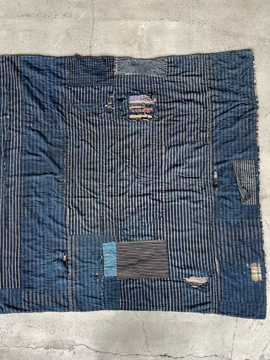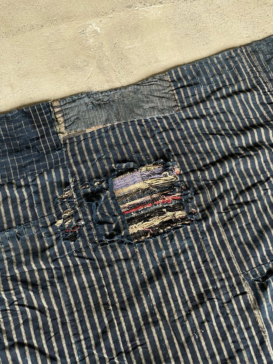 襤褸 ボロ 藍染 古布 リメイク BORO 古裂 木綿 着物 裂織 大判 肉厚 古物 骨董 アンティーク 古道具 刺子 SASHIKO 明治 大正 SAKIORI