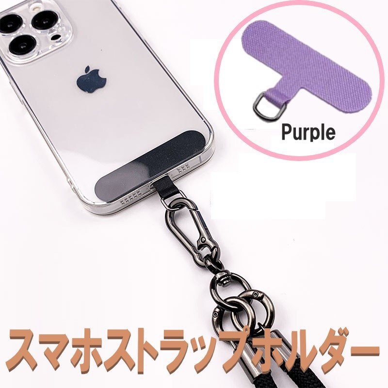 スマホ用 ストラップホルダー パープル スマホショルダー Dカン金具 カード スマートフォンAndroid iPhone