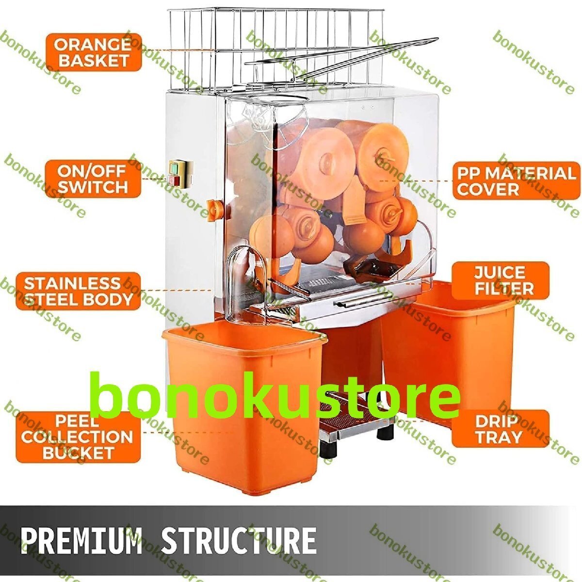 120W業務用オレンジジューサー 自動皮むき式低速咀嚼式オレンジジュース抽出機 毎分20個、搾汁率:40~50% カフェテリア バー
