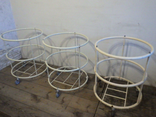 タZ0138◆③H74cm×W60,5cm◆ビンテージ◆キャスター付◆アイアンフレームのボールカゴ◆収納カゴ ランドリーバスケット レトロ 工業系M庭