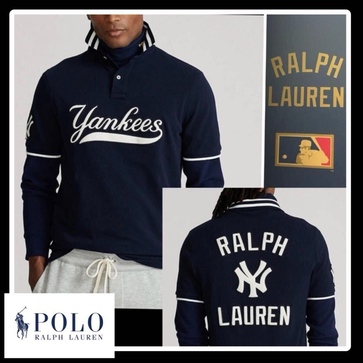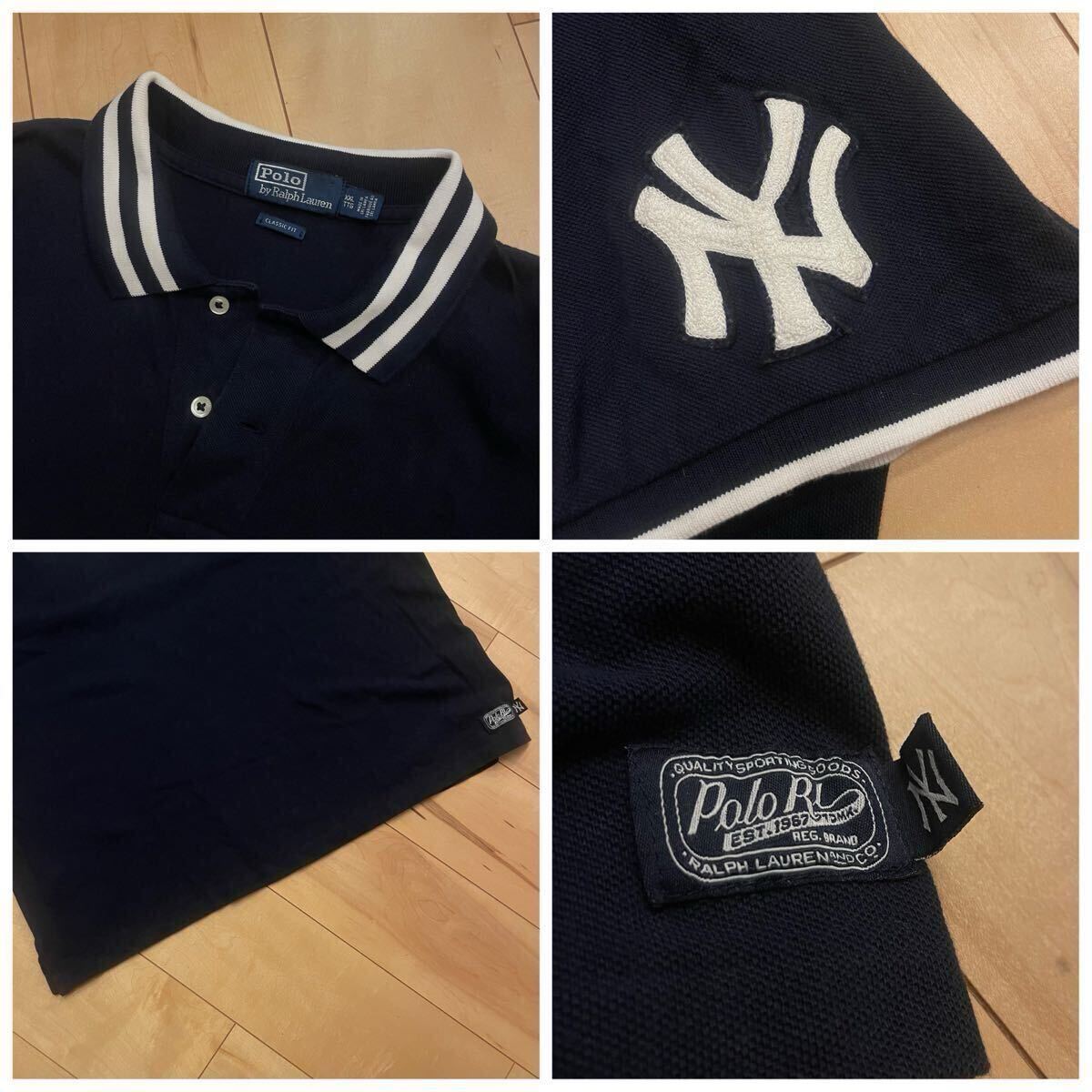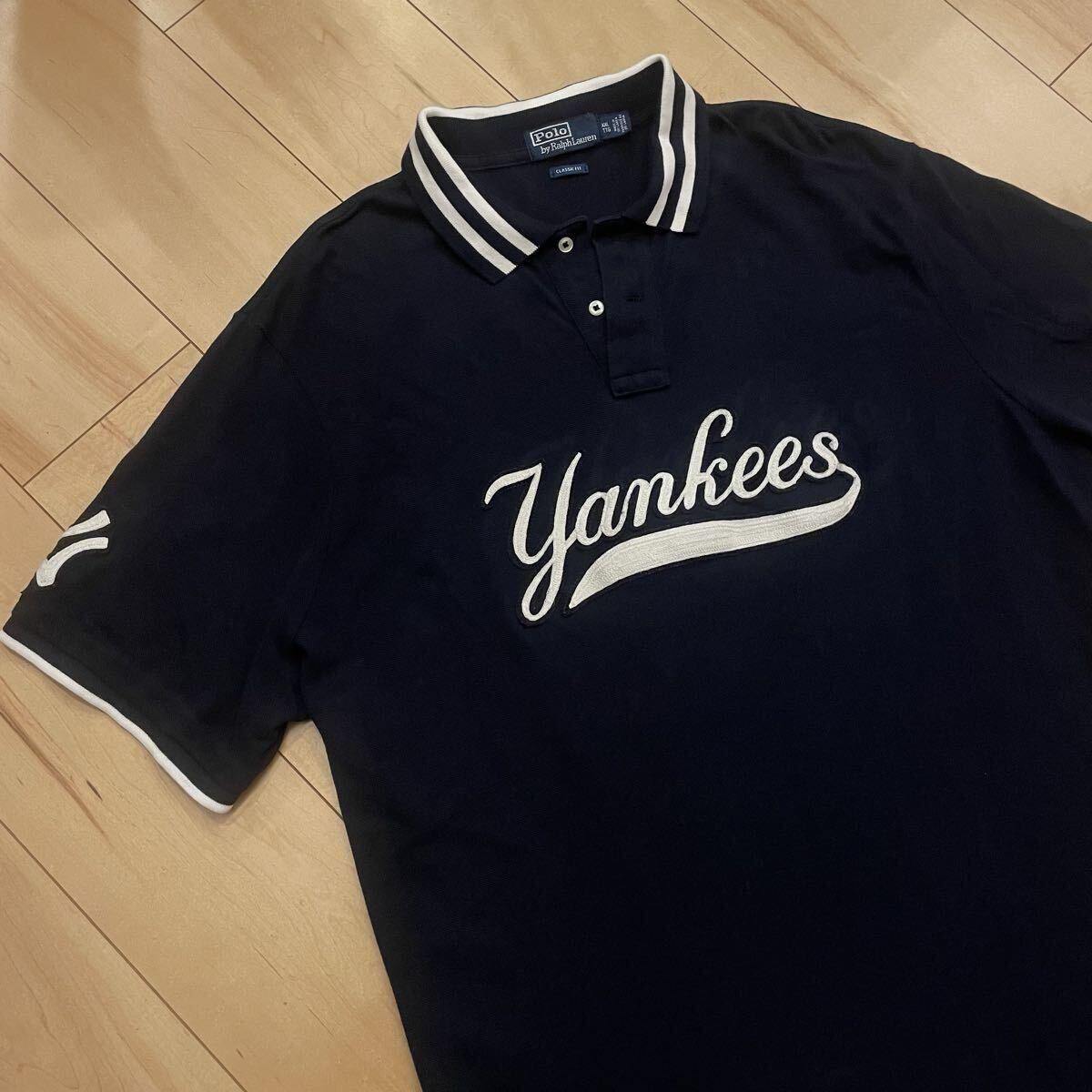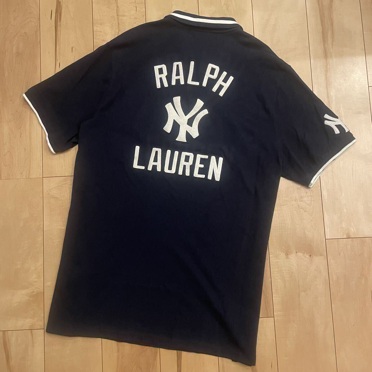 【希少】XXL/メンズ ラルフローレン コラボ MLB ヤンキース コラボ NY 半袖 ポロシャツ 紺 ビッグロゴ 刺繍 ラルフ パーカー のin /m l xl