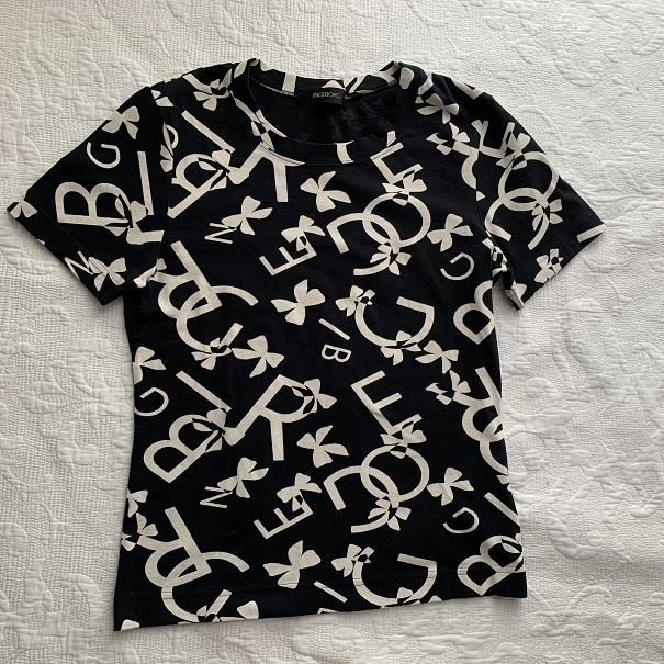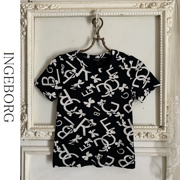 INGEBORG リボン ロゴ  半袖 Tシャツ カットソー コットン 綿 ストレッチ素材  レディース服 インゲボルグ  黒 ブラック