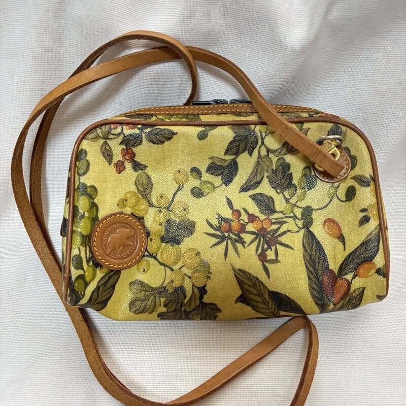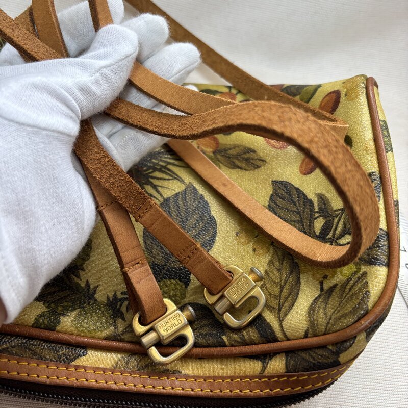 HUNTING WORLD ハンティングワールド ボタニカル柄 ミニショルダー ボディーバッグ PVC×レザ モノグラム LVカット GOLD 金具 IW508BA05HNT