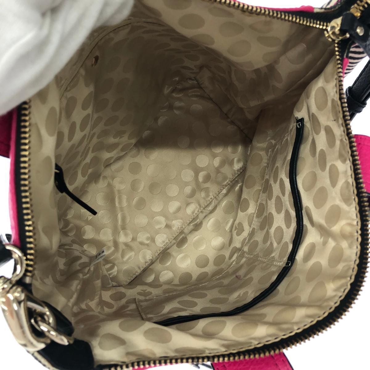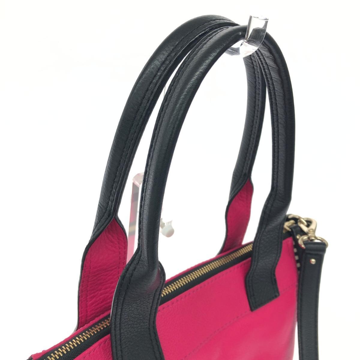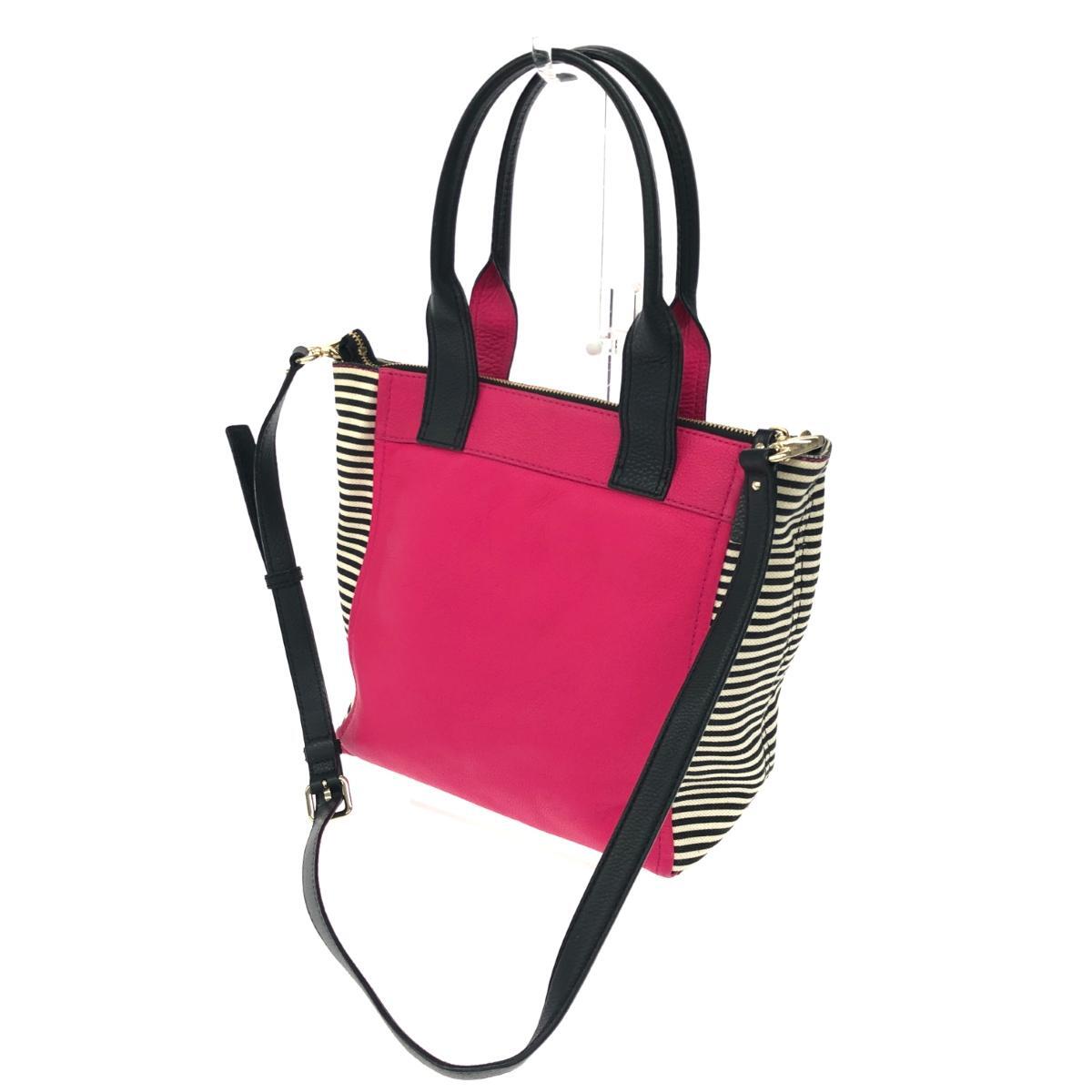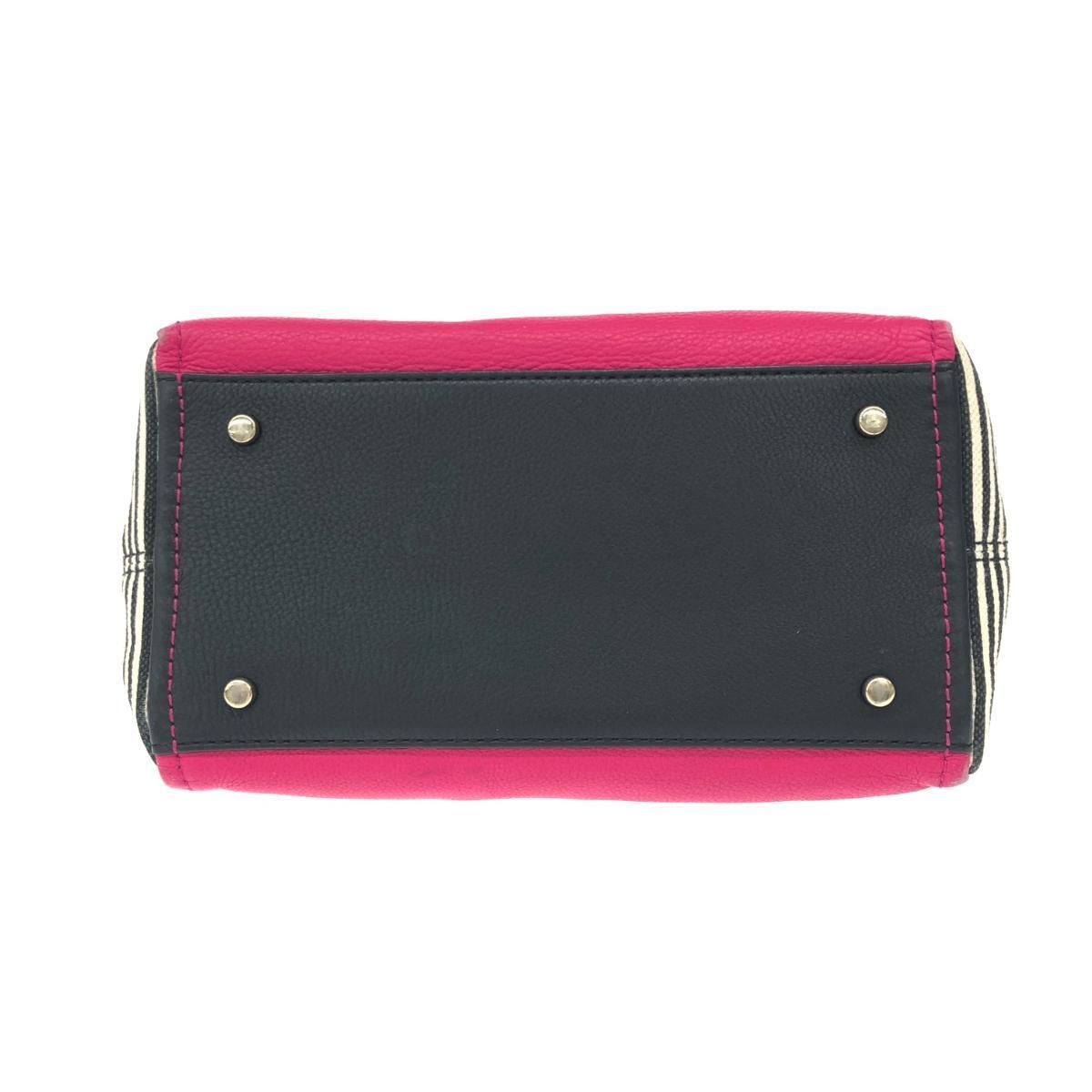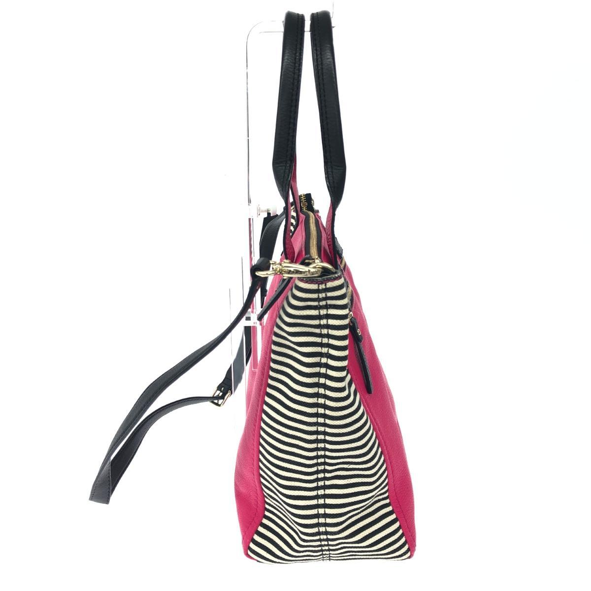 2WAYトートバッグ ボーダー キャンバス レザー フューシャ |