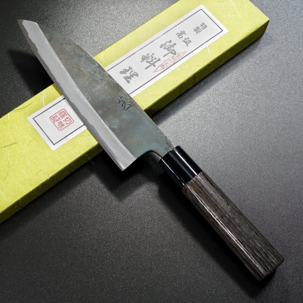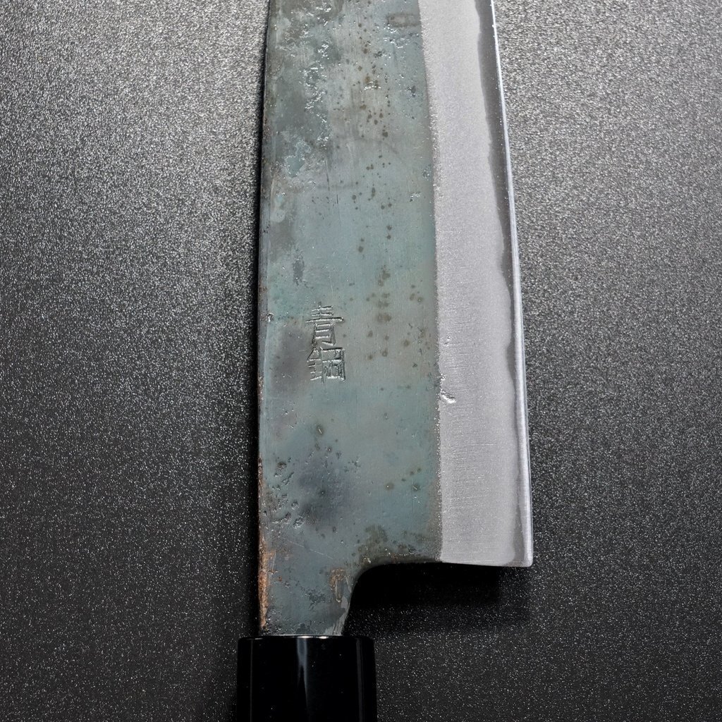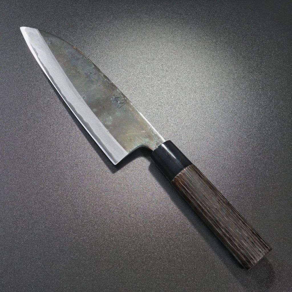 包丁 三徳 170mm 本久一 青紙鋼 黒打 栗木柄 本久一刃物 日本製