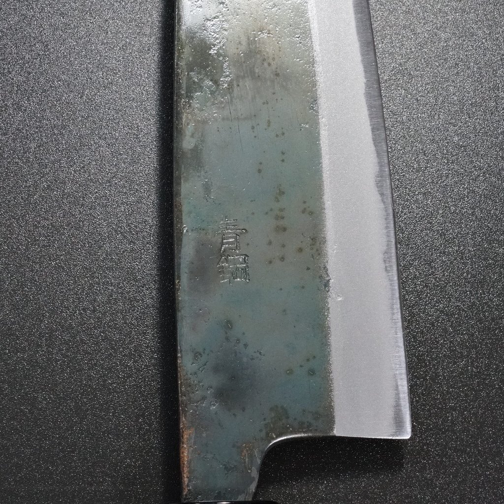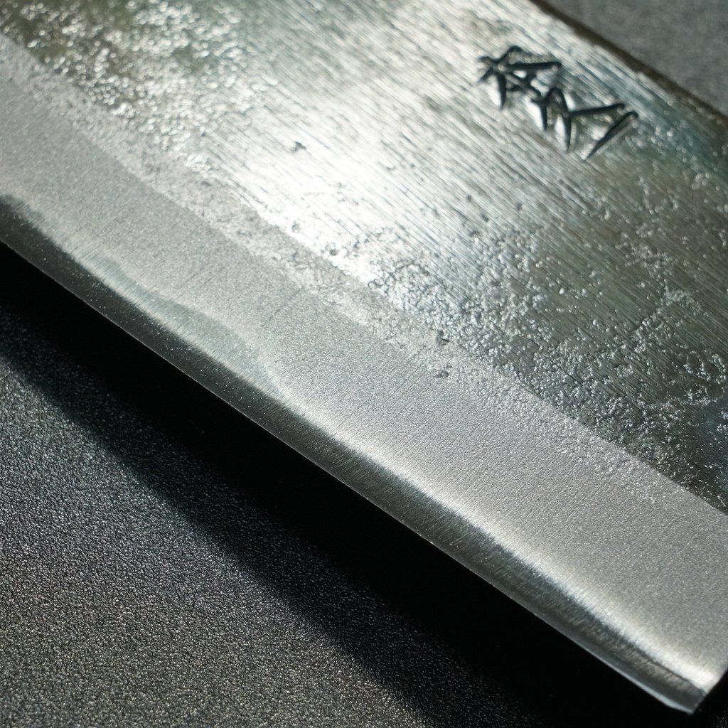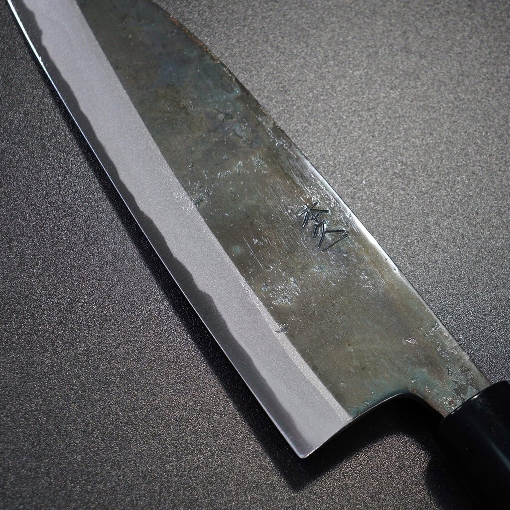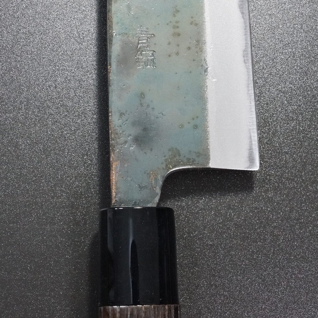 包丁 三徳 170mm 本久一 青紙鋼 黒打 栗木柄 本久一刃物 日本製
