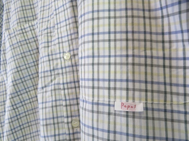 【送料300円可】1180b2◆良品です◆日本製◆Papas パパス ボックスタイプ 半袖チェックシャツ M/ジャケット/コート/スウェット/パンツ