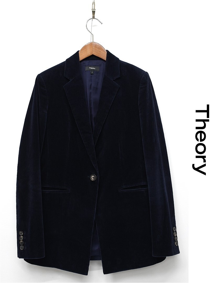 H517/Theory コーデュロイ テーラードジャケット 1つボタン 総裏 センターベント ストレッチ 0 S 濃紺