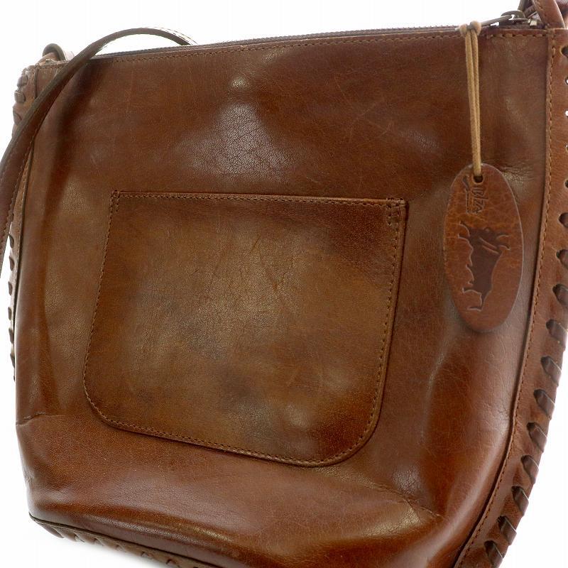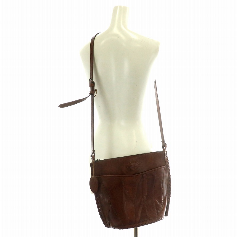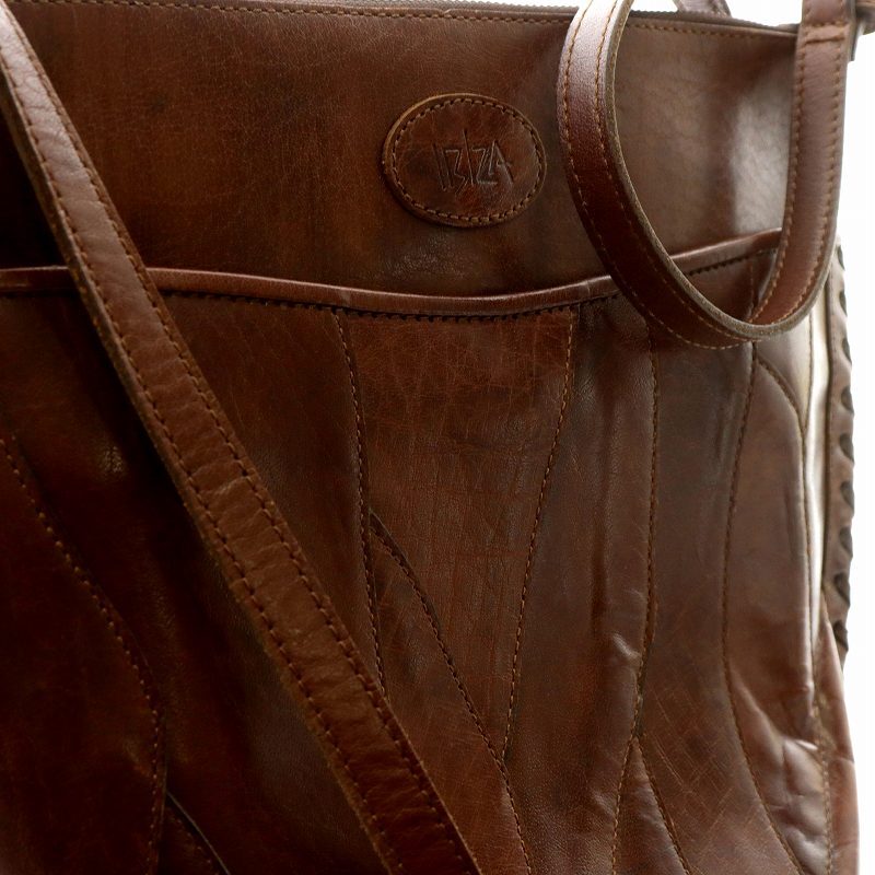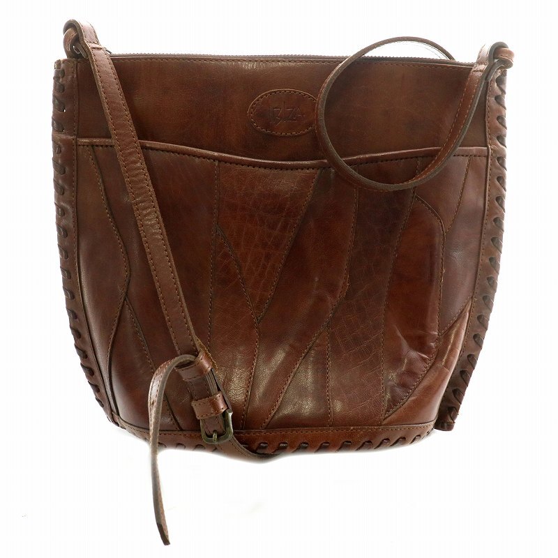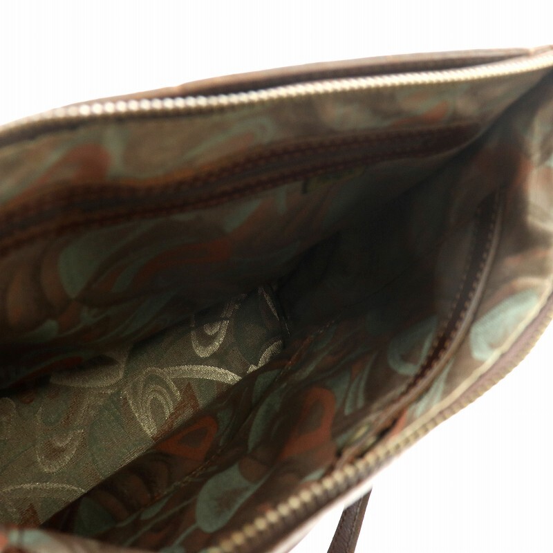 イビサ IBIZA ショルダーバッグ レザー 皮革 ロゴ 総裏地 幾何学模様 茶 ブラウン 緑 グリーン /MP ■GY18 レディース