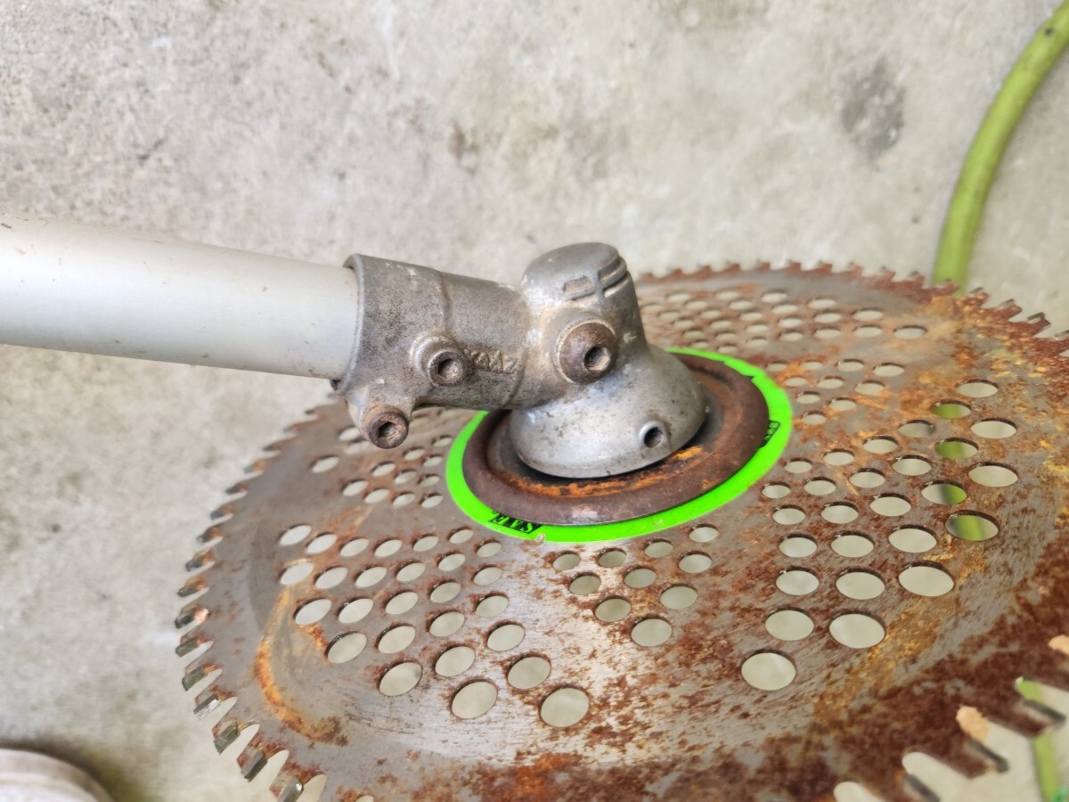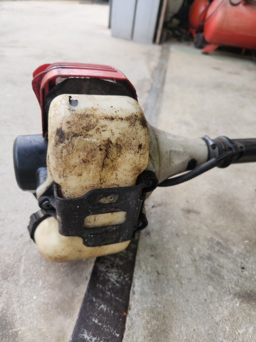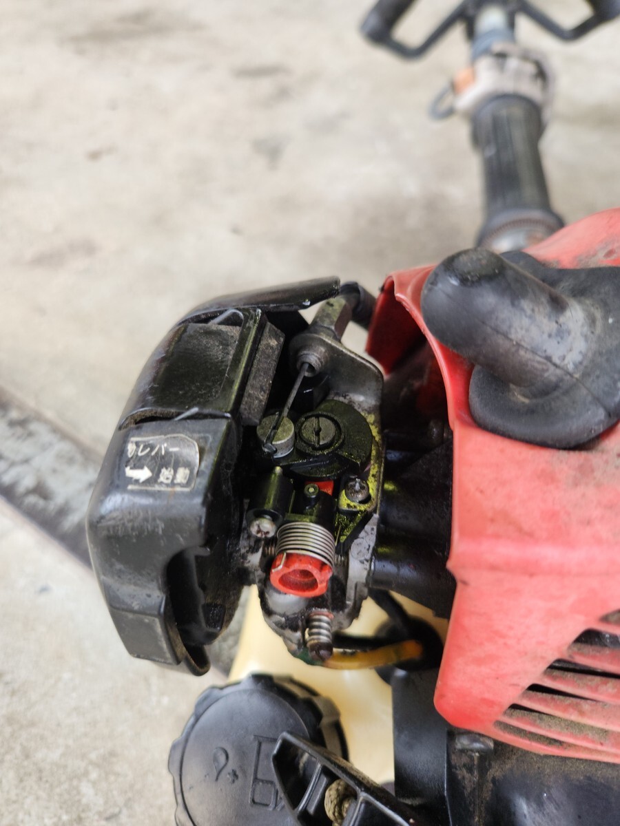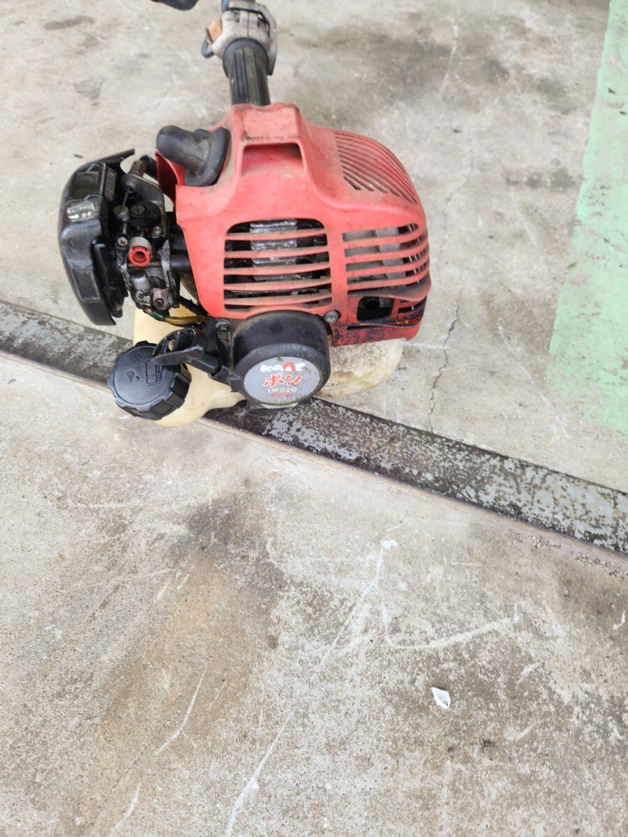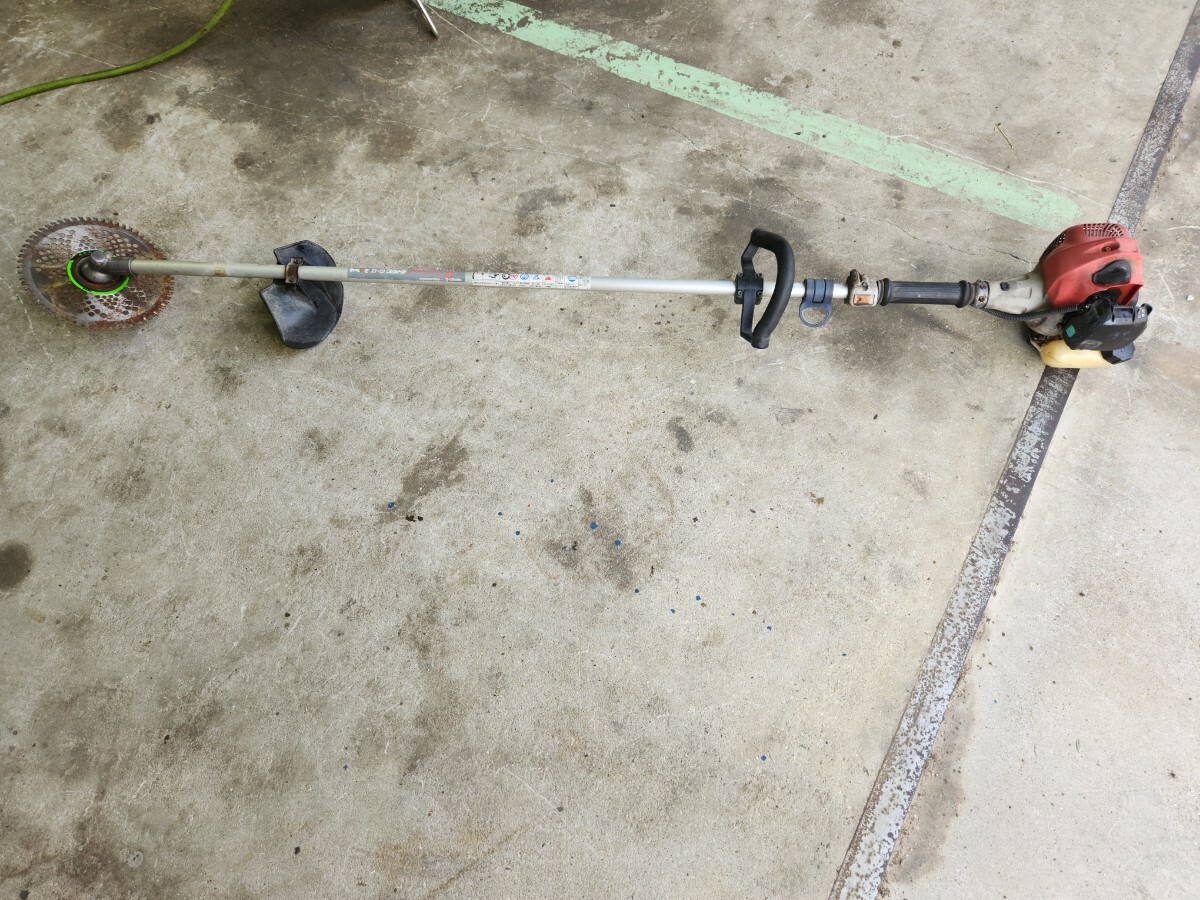 エンジン本体とハンドルや飛散防止カバーなどが付いている竿部分とチップソーの付いているギアケース部分を外して梱包致します