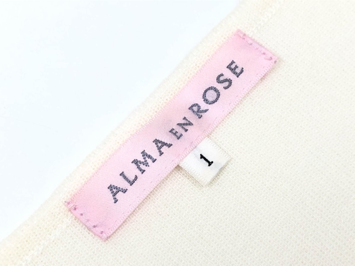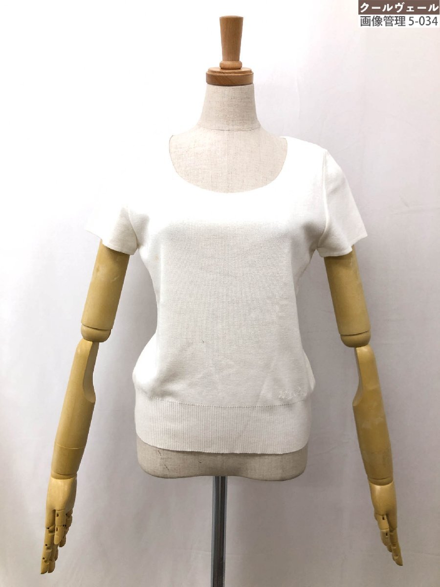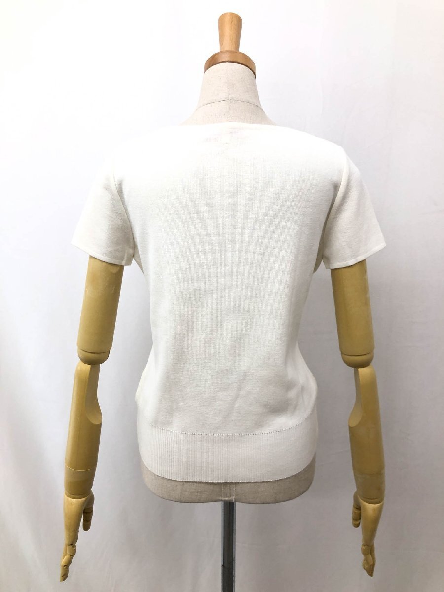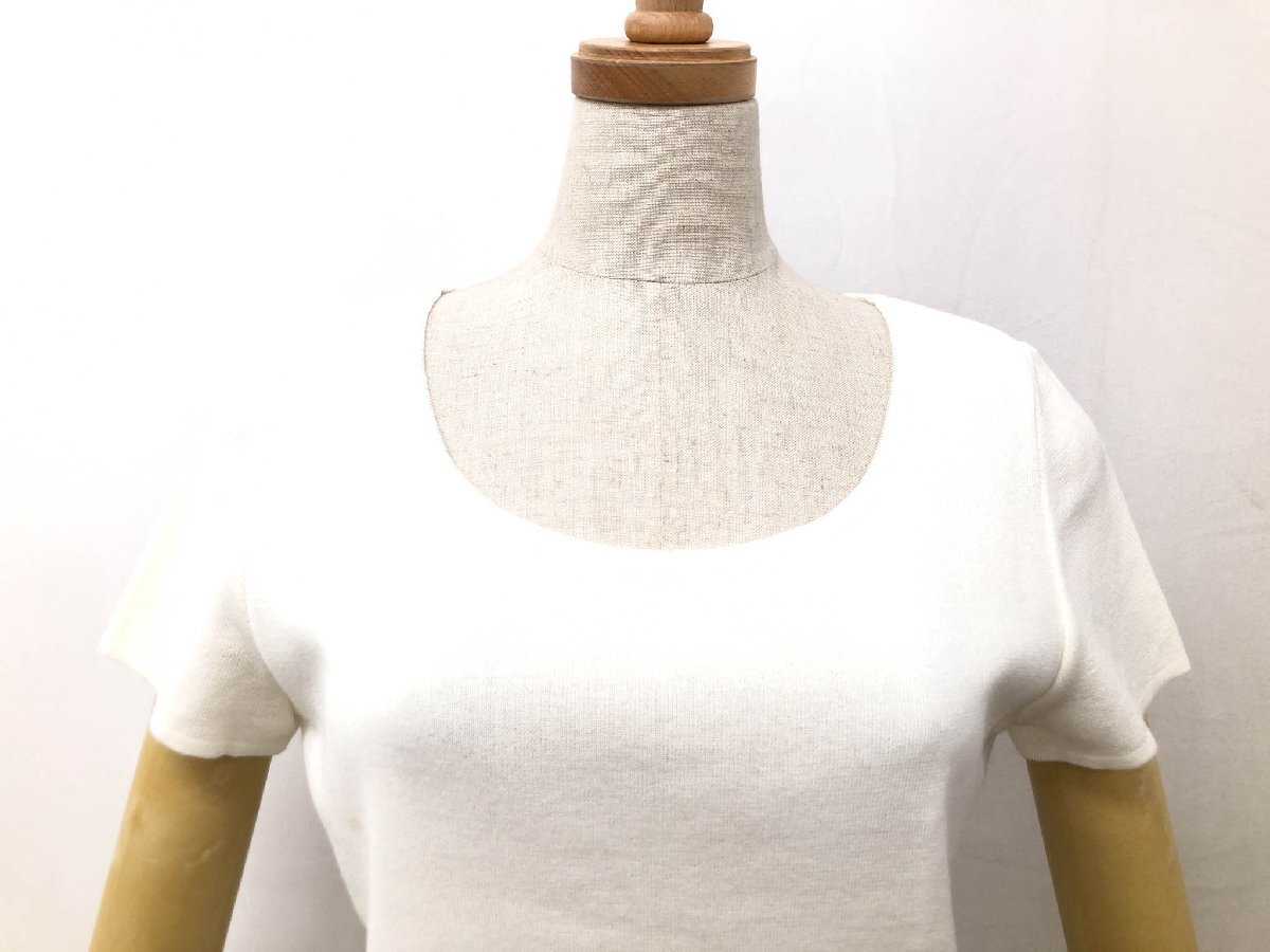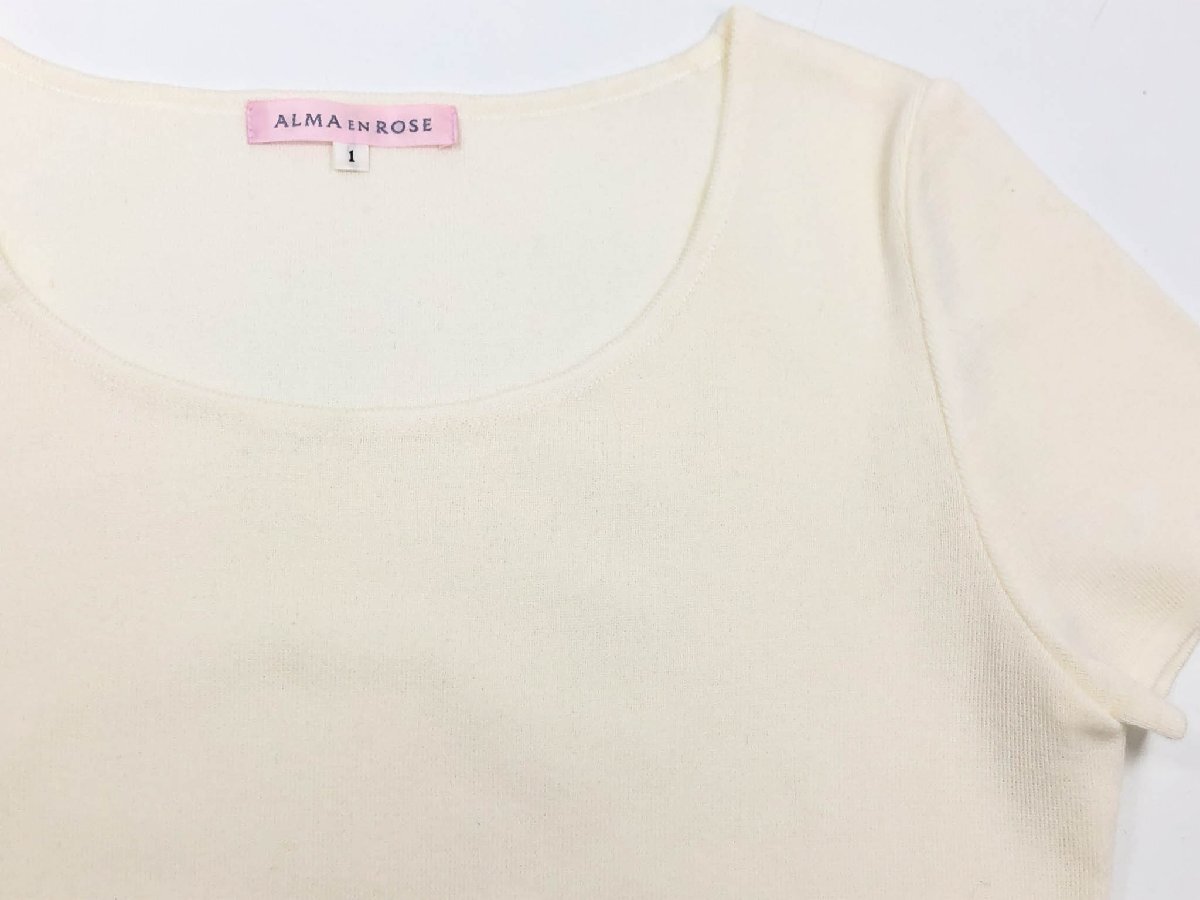 美品【アルマアンローズ ALMA EN ROSE】40-94181-18 ラウンドネック 半袖 ハイゲージニット (レディース) 1 オフホワイト系 ◇17LN5935◇