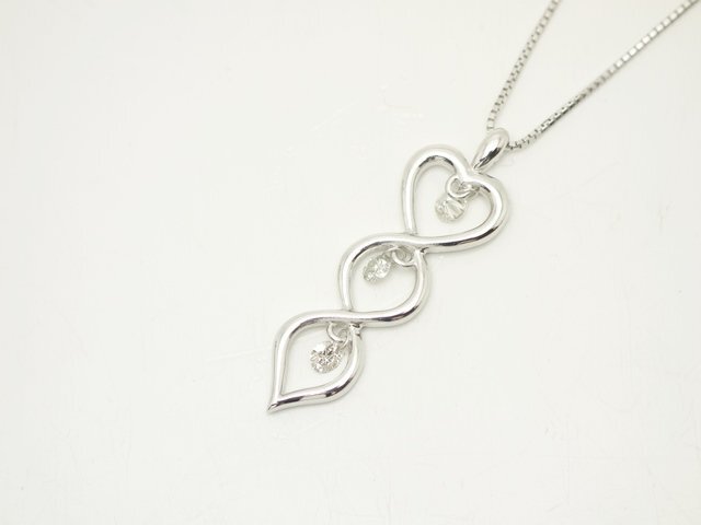 K18WG ホワイトゴールド ペンダントネックレス ダイヤ0.25ct ハート 3連 アクセサリー レディース 中古 送料無料【質屋出品】