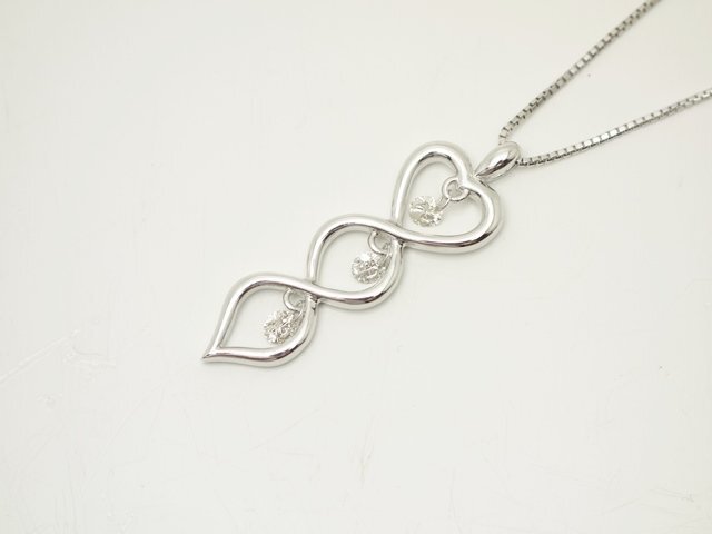 K18WG ホワイトゴールド ペンダントネックレス ダイヤ0.25ct ハート 3連 アクセサリー