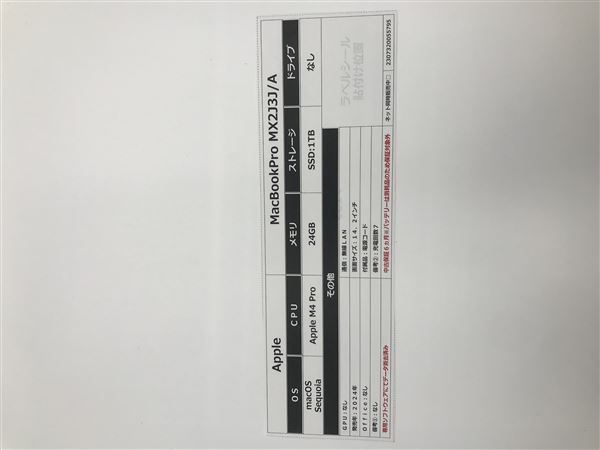 | MacBookPro 2024年 MX2J3J/A【安心保証】 |
