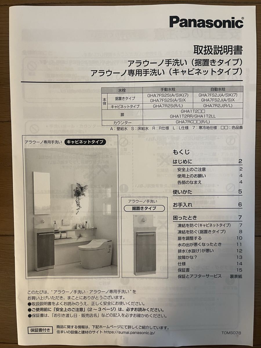 パナソニック アラウーノ 手洗い(手洗いボール、排水トラップ)