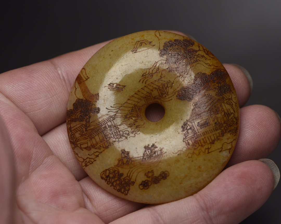 *珍品旧蔵* 清 玉彫 和田玉 平安璧 玉質温潤細膩 沁色自然 包漿一流 極細工 中国古玩 骨董品 古美味 H48