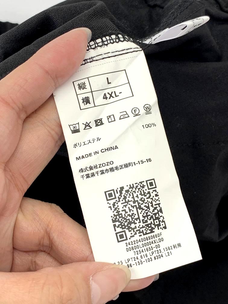 | 表記サイズ | 縦L横 4XL | ||||||||||