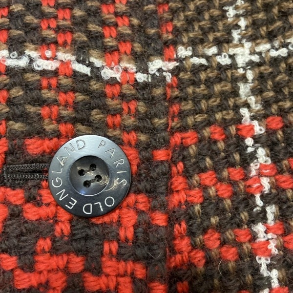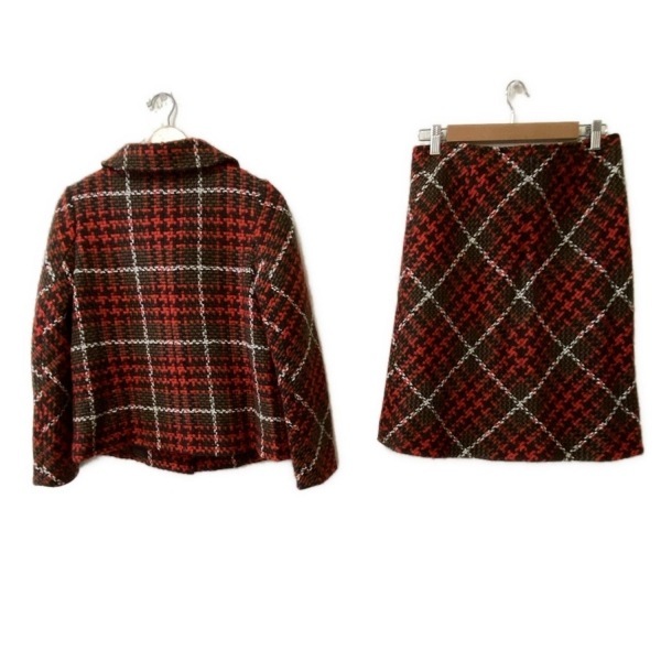 オールドイングランド OLD ENGLAND スカートスーツ レッド×ダークブラウン×マルチ レディース チェック柄 美品 レディーススーツ