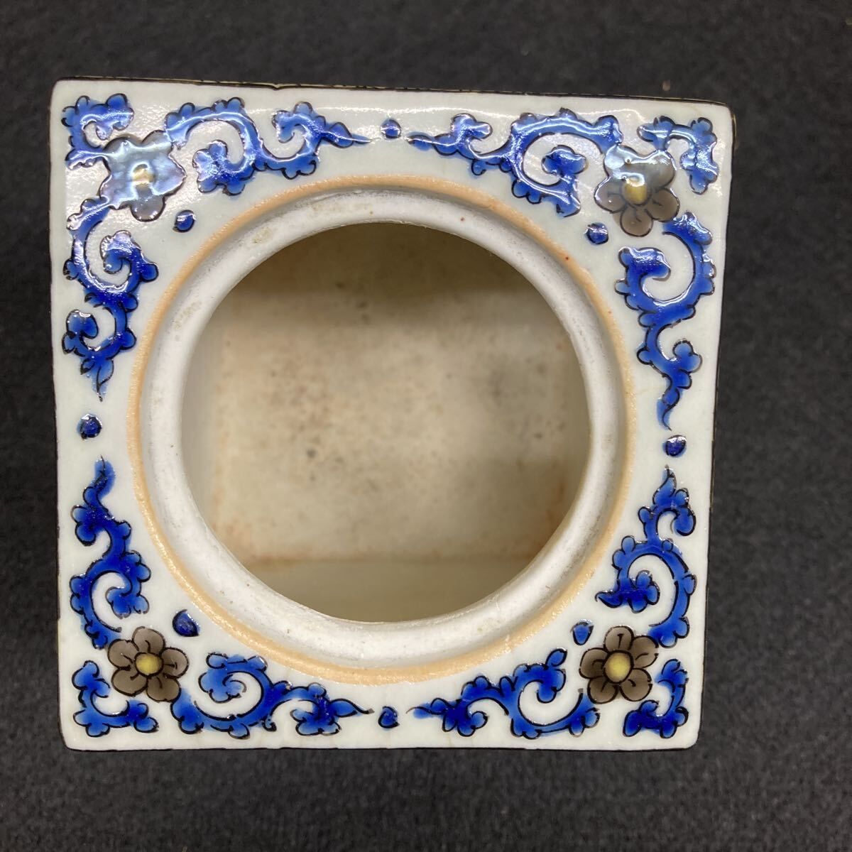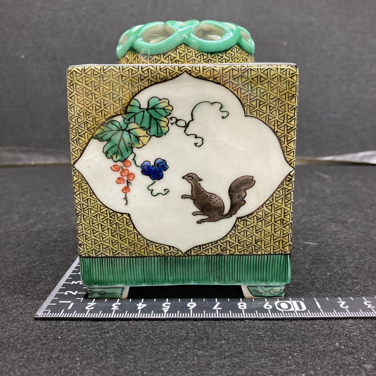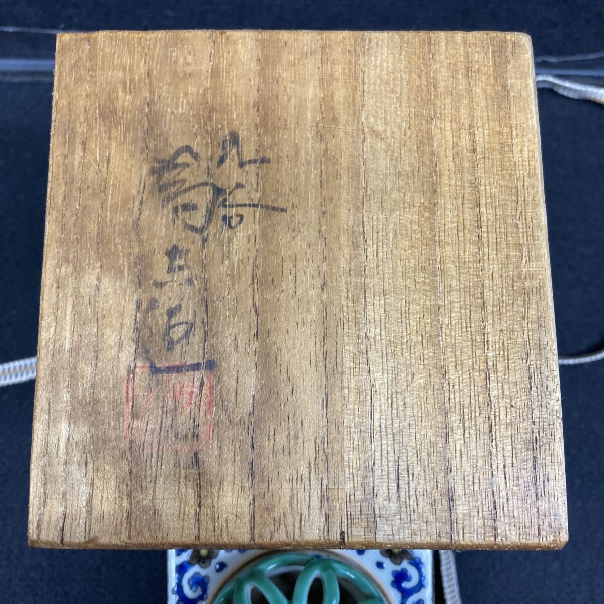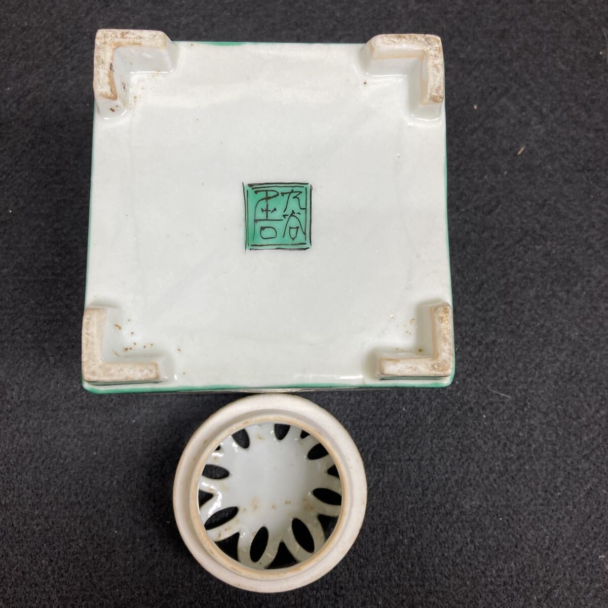 九谷焼 初代三井為吉造(物故作家)花鳥絵 角形香炉 合い箱付き   アンテーク 師(初代徳田八十吉)