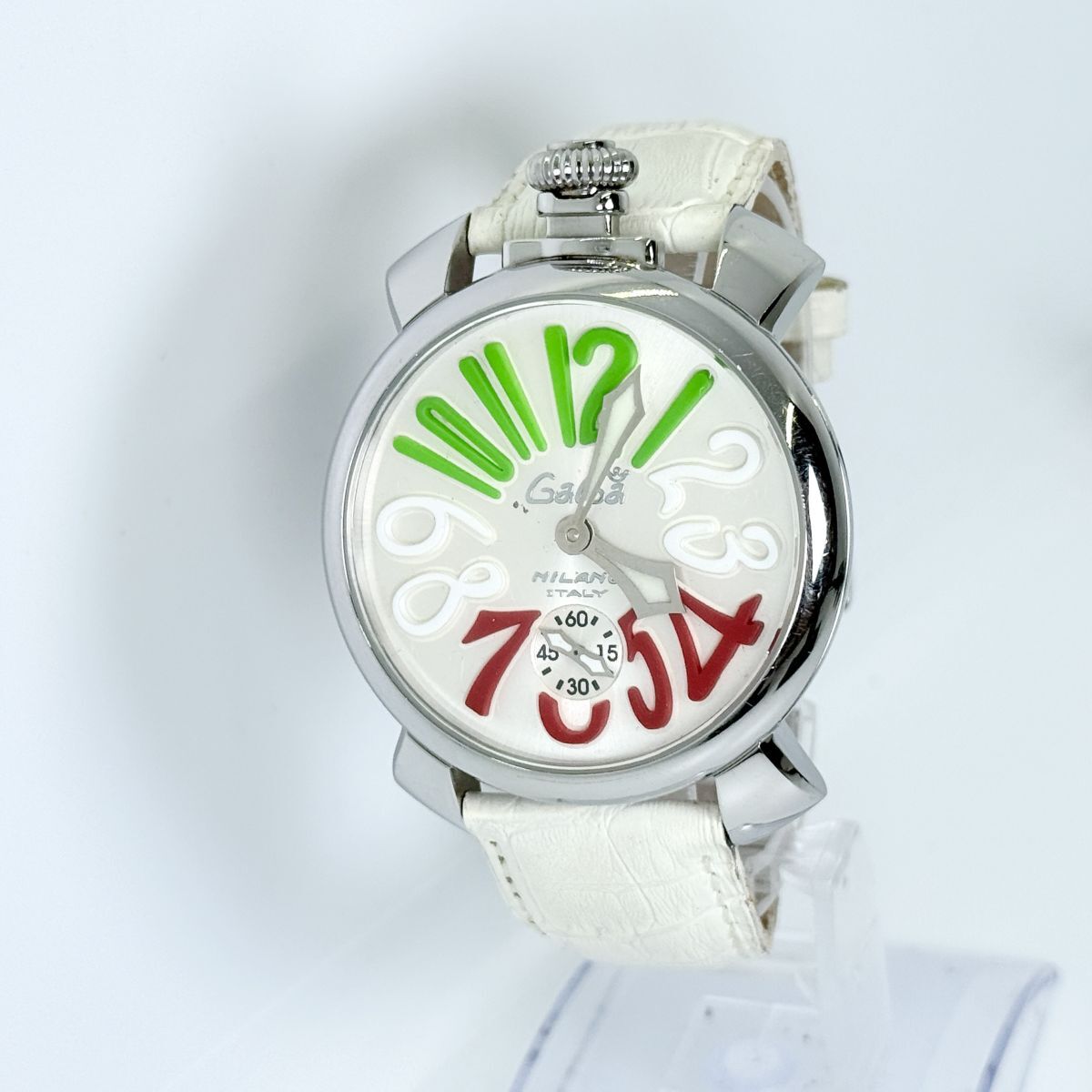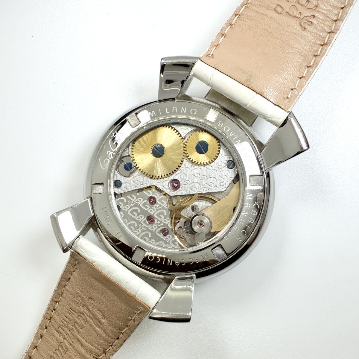 GaGa Milano ガガミラノ マヌアーレ48 シルバー 革 手巻 メンズ 稼働
