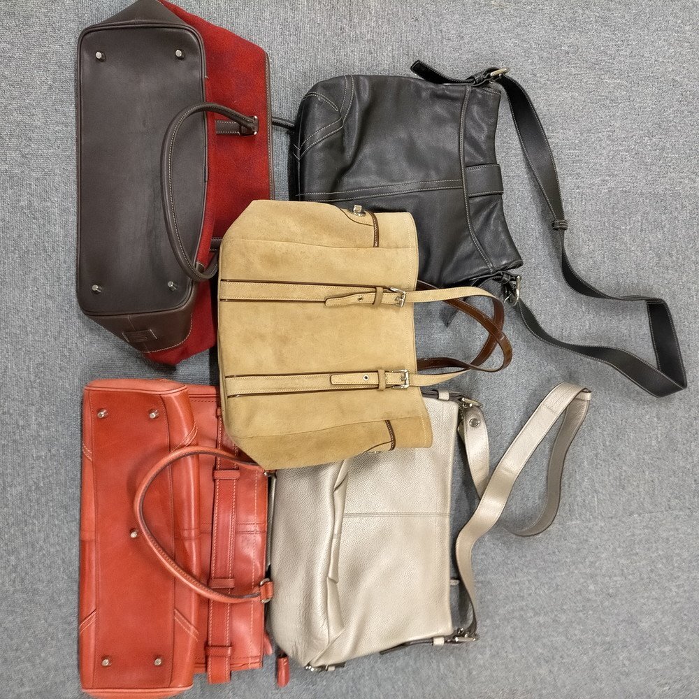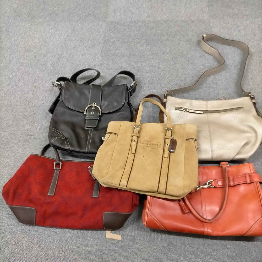 For : COACH(コーチ)のバッグ5点セットです。ハンドバッグ・ショルダーバッグ・トートバッグなど様々なタイプが含まれています。キャンバス素材やレザー素材など異なる仕様のアイテムが混在しています。
