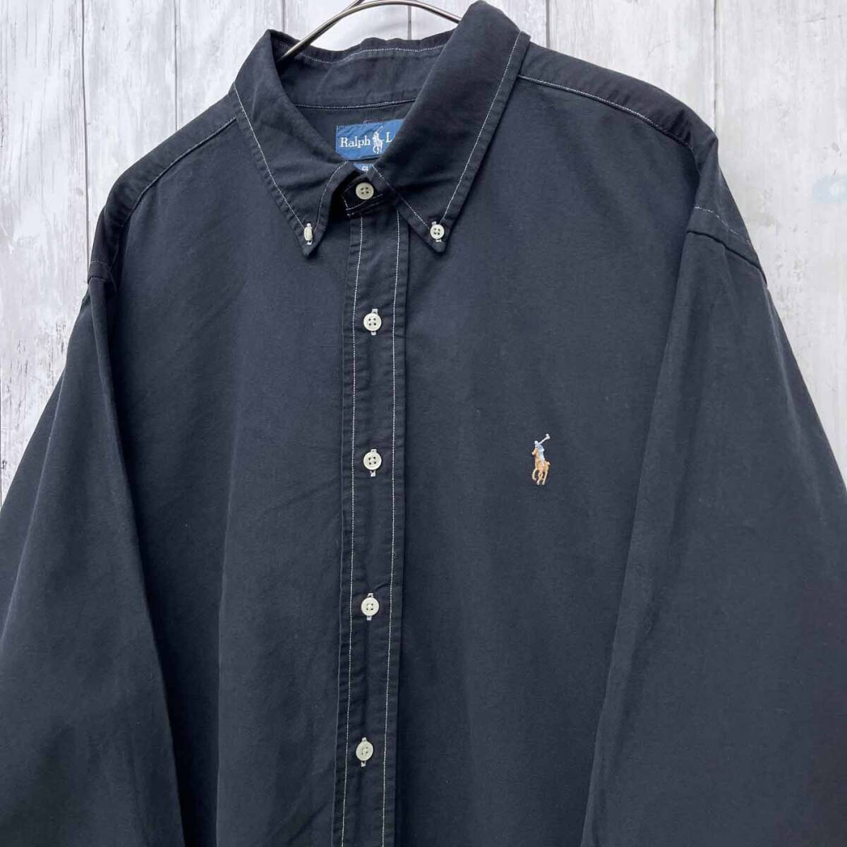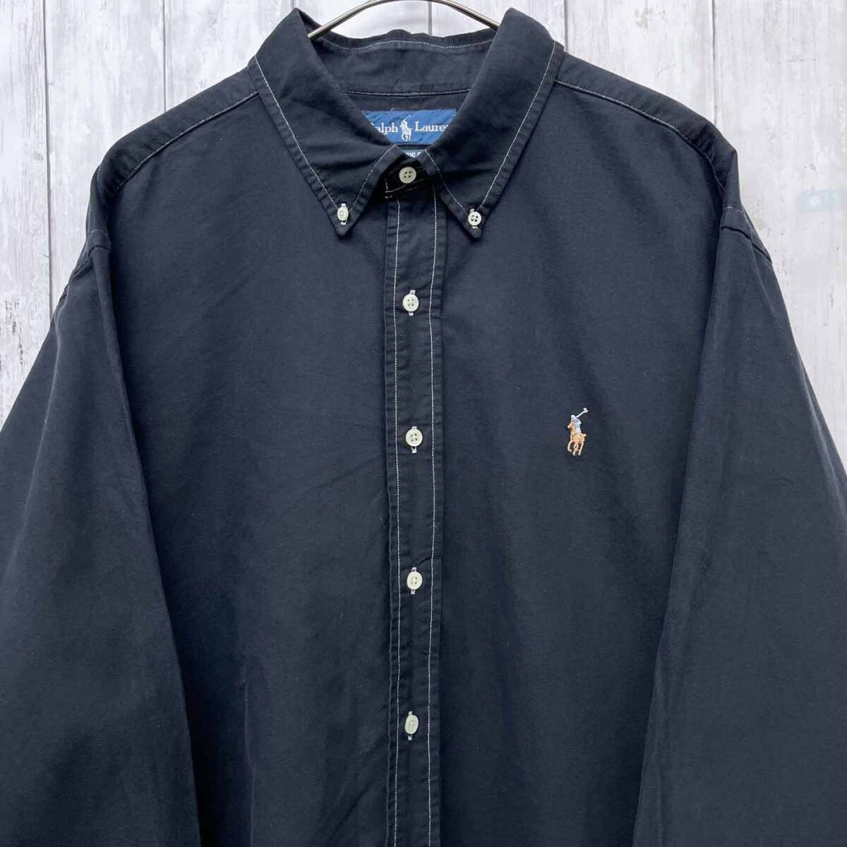 ラルフローレン Ralph Lauren 長袖シャツ メンズ ワンポイント 黒 CLASSIC FIT コットン100% XXLサイズ 6-437