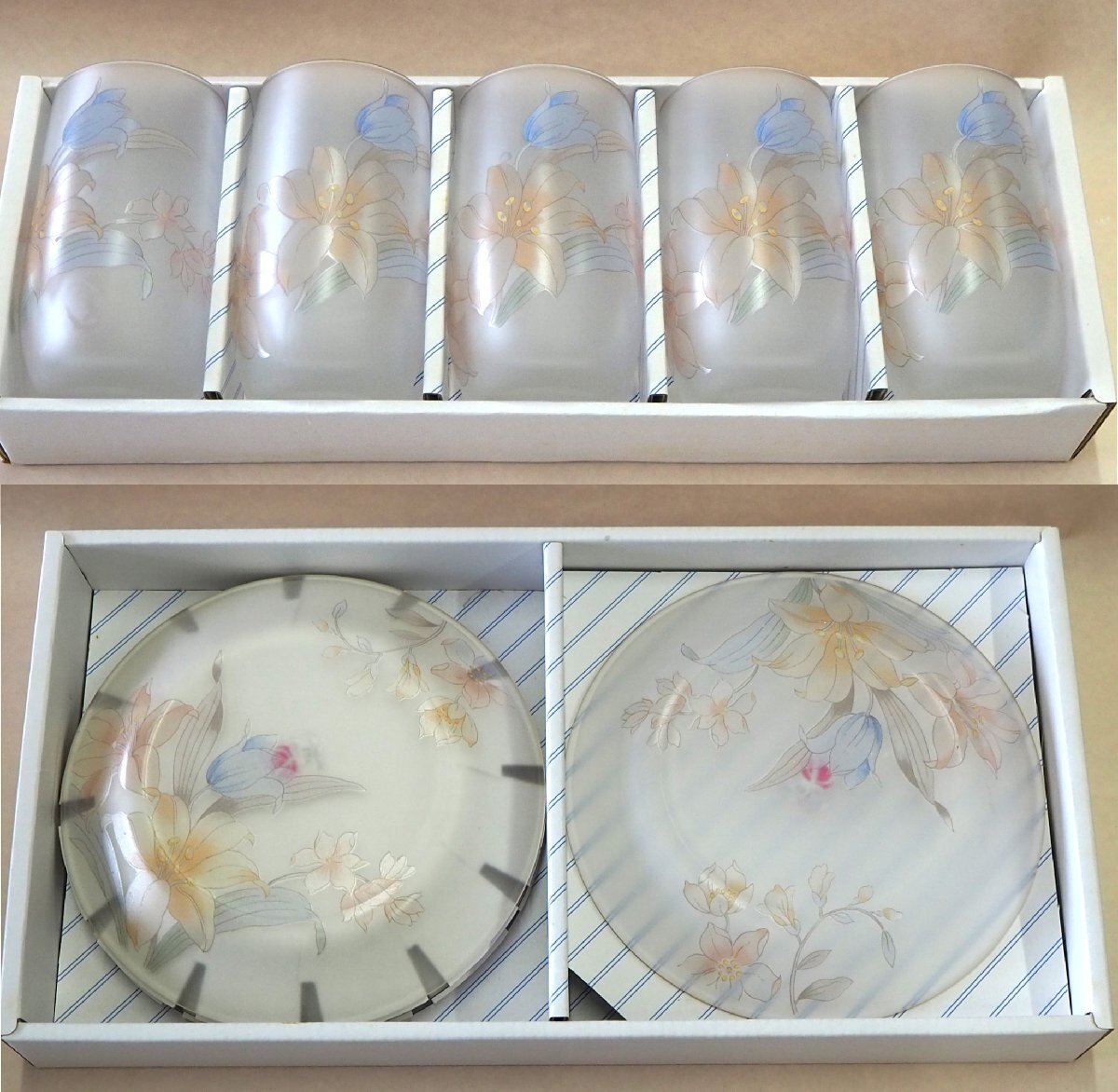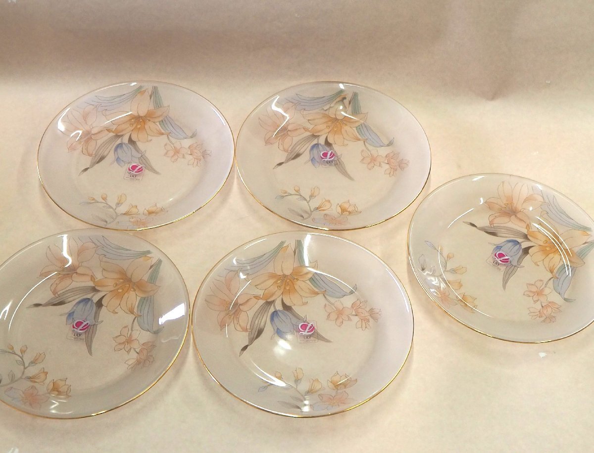 | ★☆ HOYA CORDIAL GLASS COLLECTION 花図 金縁 ケーキ皿&タンブラー 銘々皿/菓子皿/フルーツ皿/コップ 5客セット 洋食器 / 保谷硝子 ガラス皿 ☆★ | |||||||||||||||||||||||||