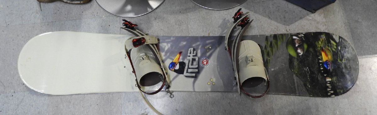 表面にはスノーボードをしてる人...と見せかけてくちばしの大きな鳥の写真があり、裏面には赤い背景にロゴがあるだけのシンプルなスノーボードです