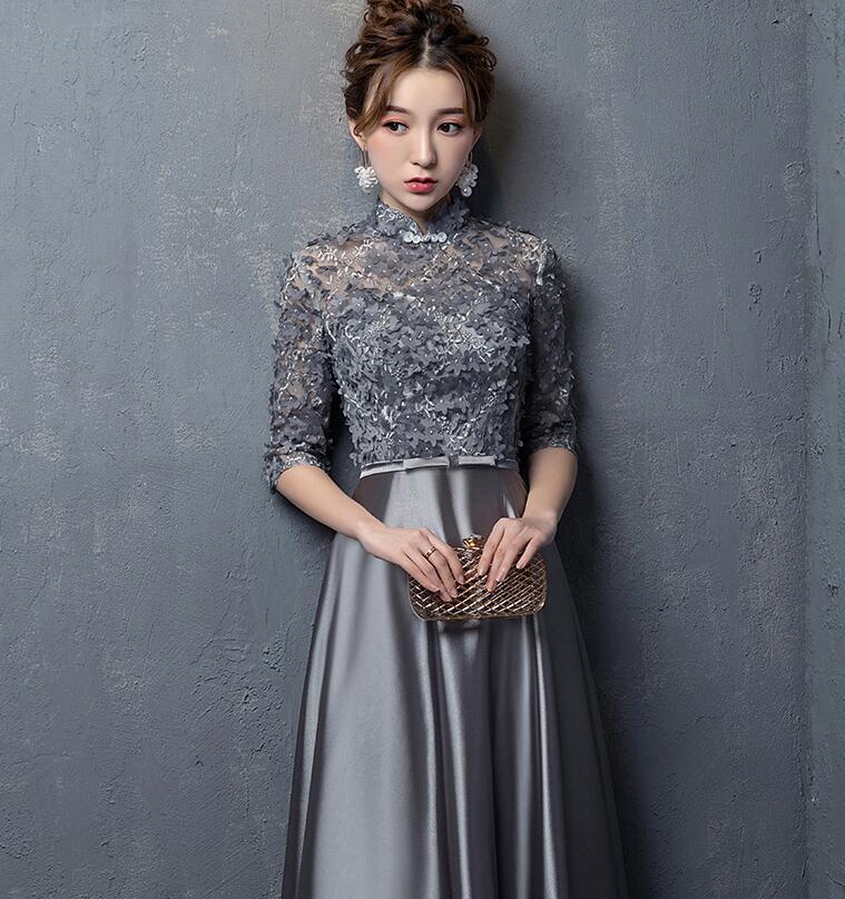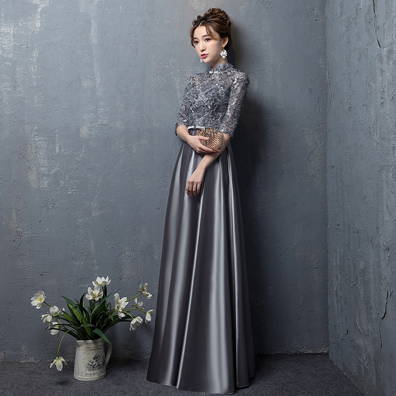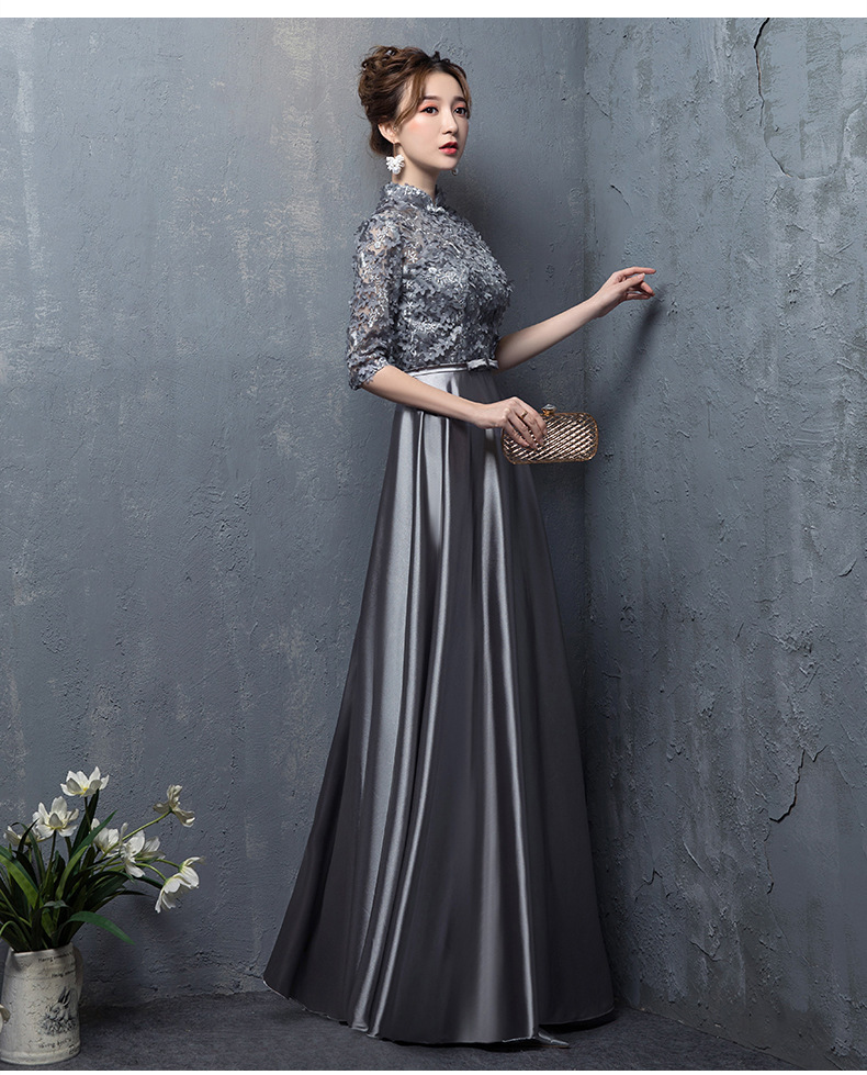 新入荷 復古調 ロングドレス ワンピ パーティドレス ナイトドレス 立ち襟 5分袖小さい~大きいサイズ 二次会 演奏会 舞台 撮影 サイズ選択可