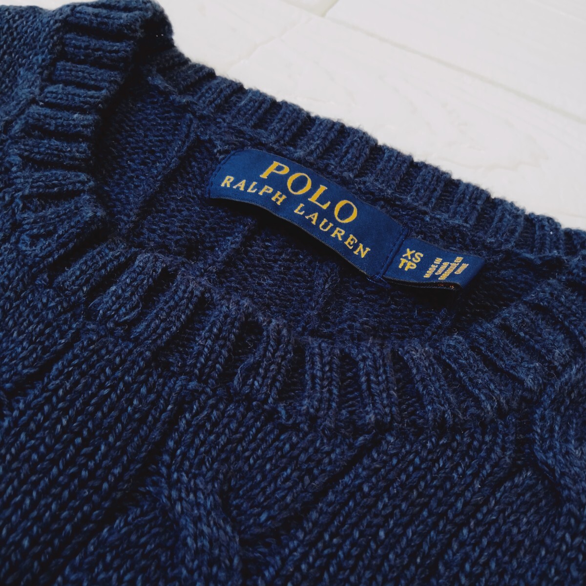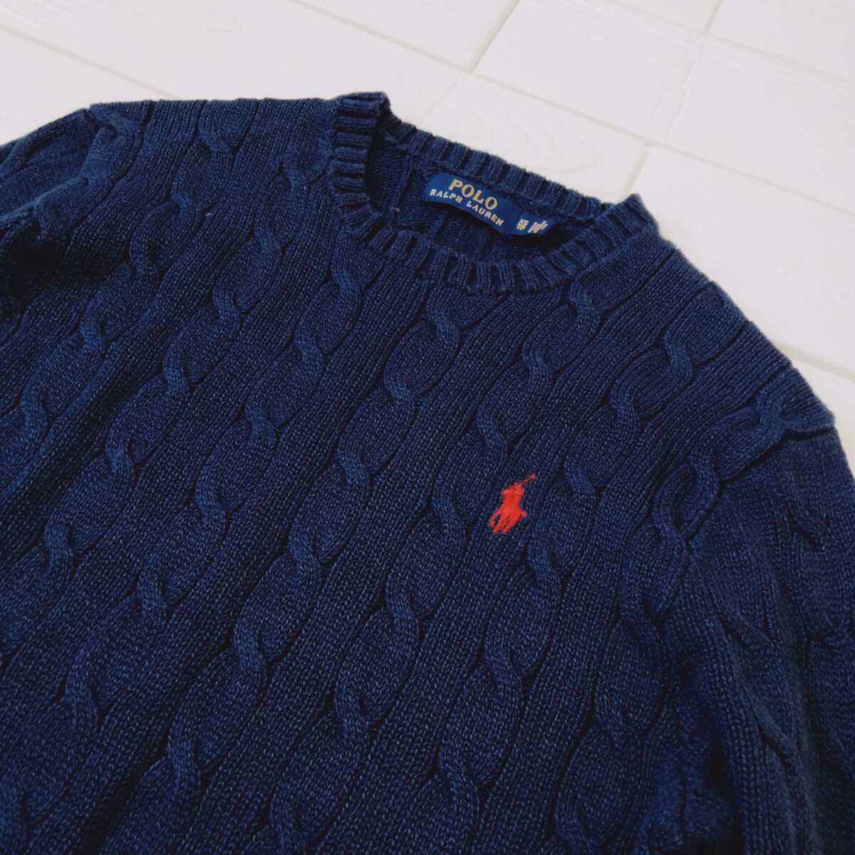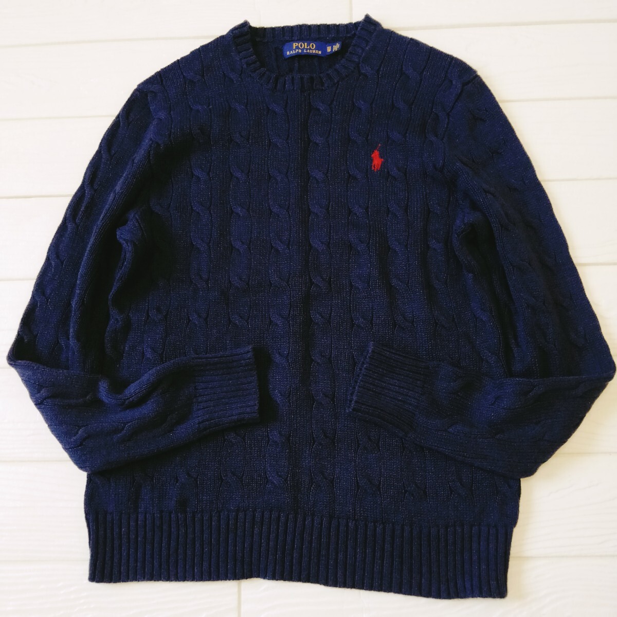 POLO RALPH LAUREN ポロ ラルフローレン コットン綿 ケーブルニット セーター 丸首 ポニー刺繍 サイズXS 紺 メンズS レディースM~L 洗える
