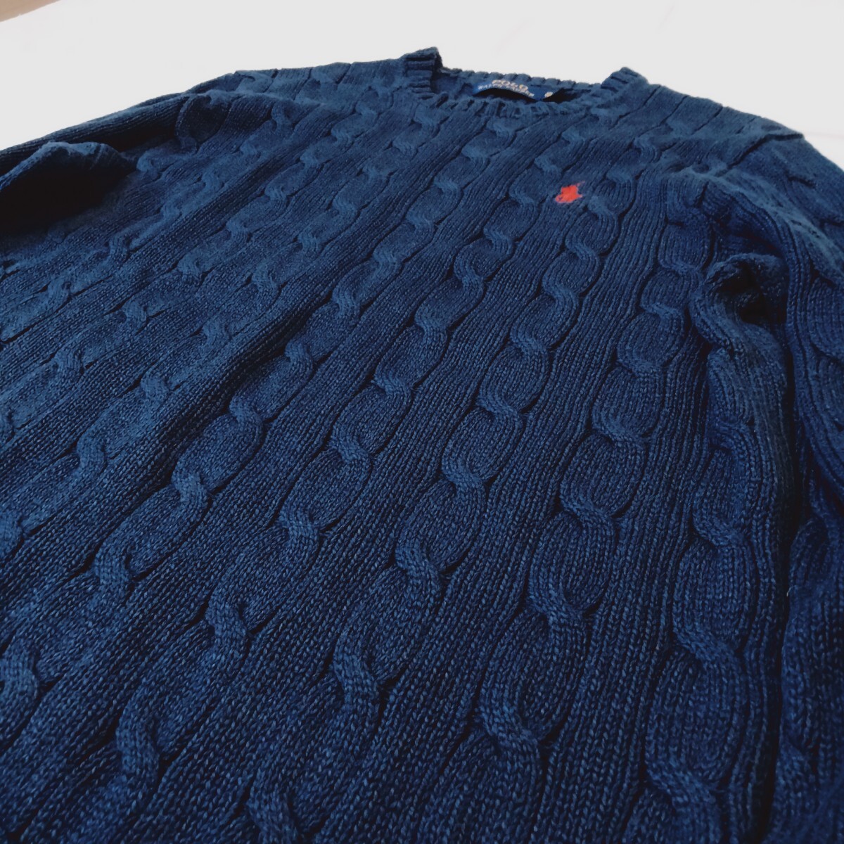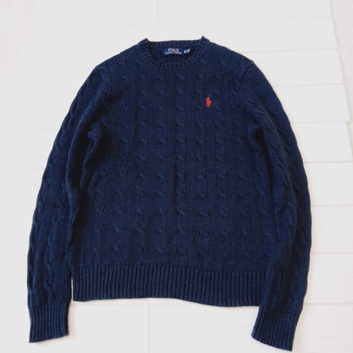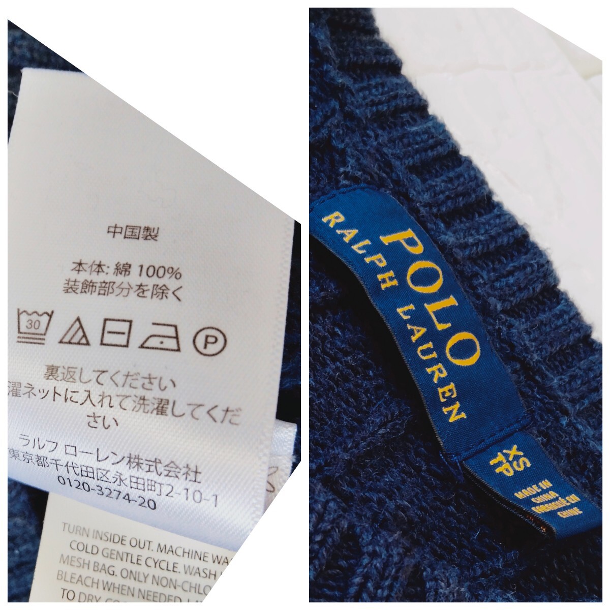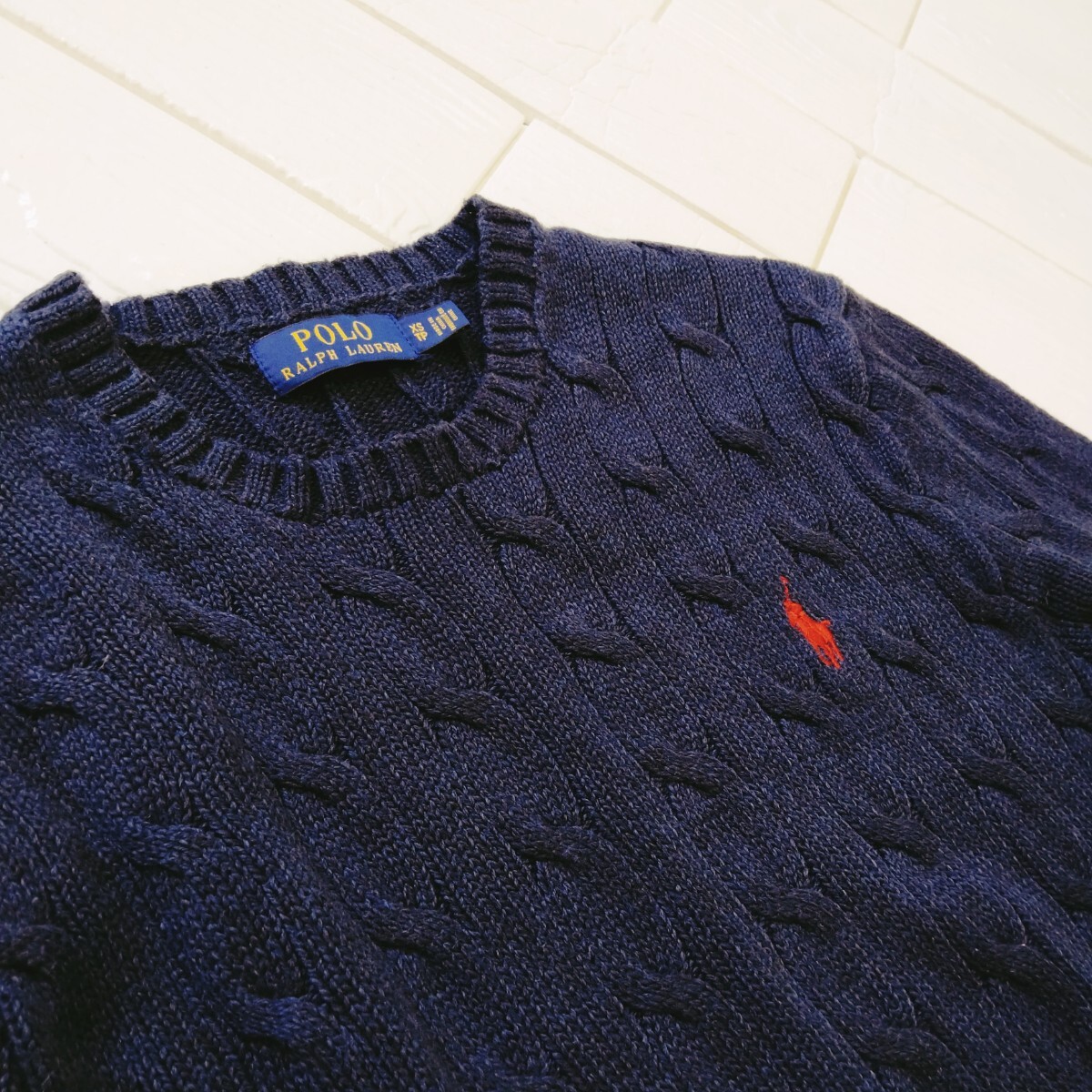 POLO RALPH LAUREN ポロ ラルフローレン コットン綿 ケーブルニット セーター 丸首 ポニー刺繍 サイズXS 紺 メンズS レディースM~L 洗える