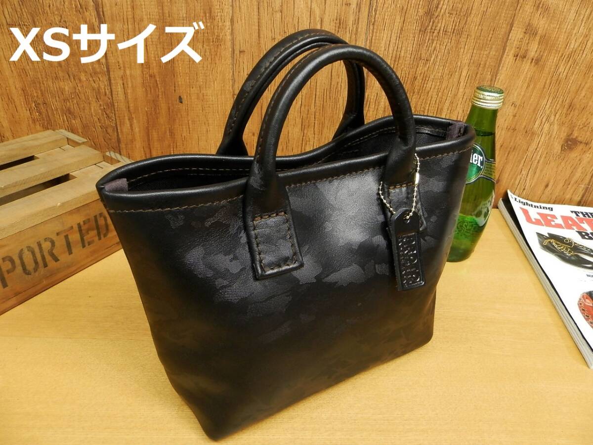 ☆XSサイズ☆カモフラ迷彩柄レザーのミニトートバッグ!日本製ブラック姫路レザー裏地ハンドメイド本革ミリタリー