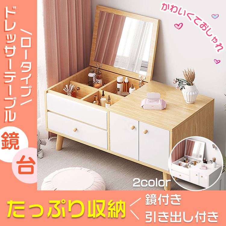 ドレッサー おしゃれ テーブル 鏡台 収納 ロータイプ ロー デスク 化粧台 メイク コスメ 鏡付き ベージュ ナチュラル かわいい 化粧 ny475