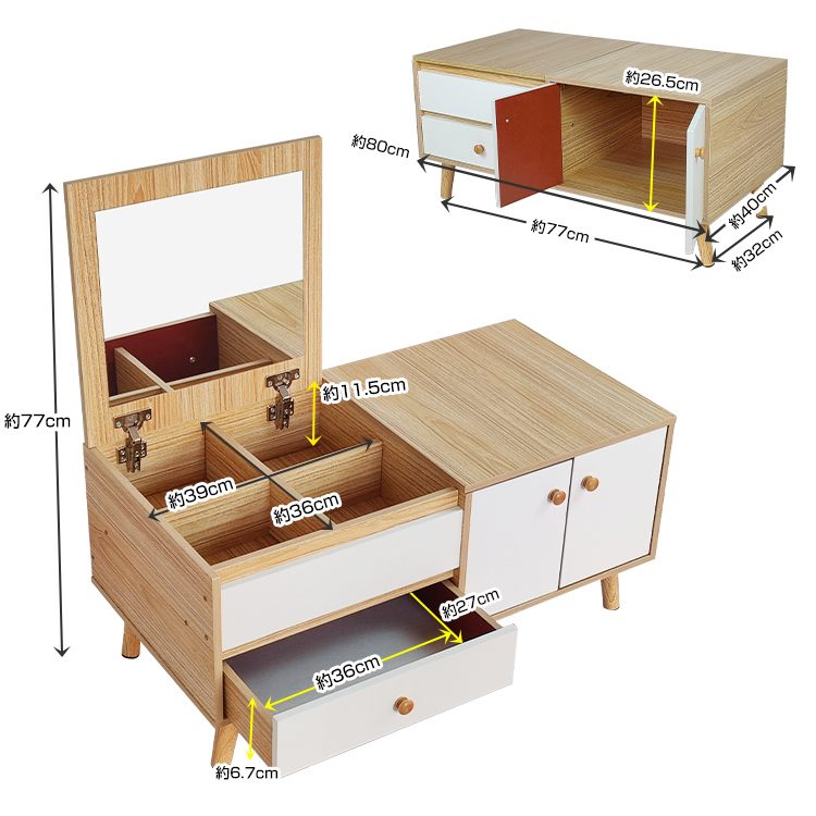 ■普段はテーブルとして、化粧をする時はドレッサーとして、収納スペースもたっぷり。