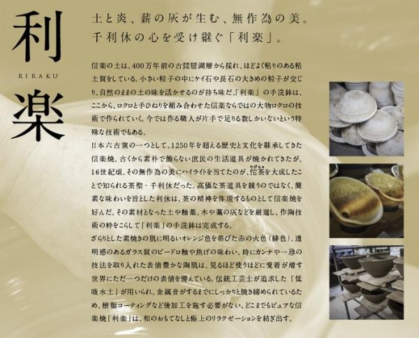 伝統工芸士による信楽焼の手洗器です。追求された「低吸水土」が用いられ、金属音がするまでにしっかりと焼き締められています。工芸士の手作りなので、世界にただ一つの表情を見せてくれます。 |