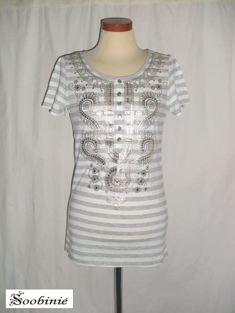送185円/新品【Soobinie】スビニエ♪ボーダー&箔プリント♪半袖カットソー 7号 | |||