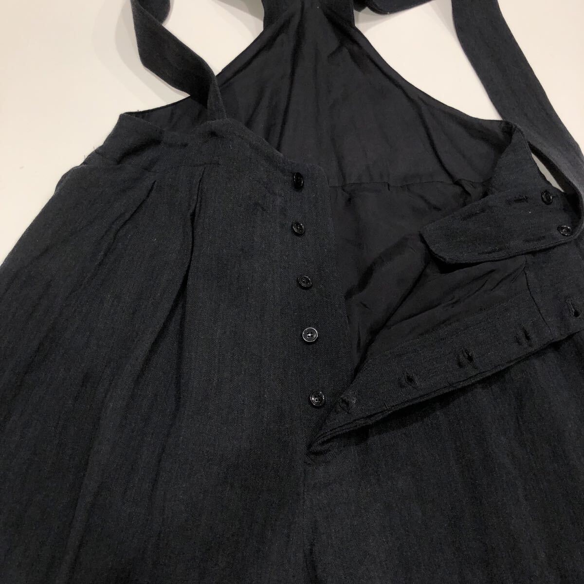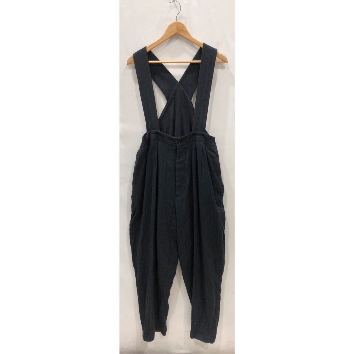 ts20250826【nest Robe】ネストローブ ウールコットンヘリンボンサロペットパンツ FREEサイズ ブラック 使用感あり 01193-1197 NH