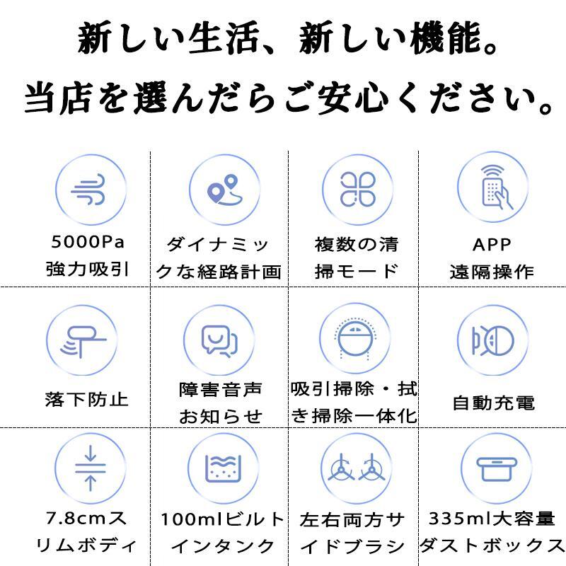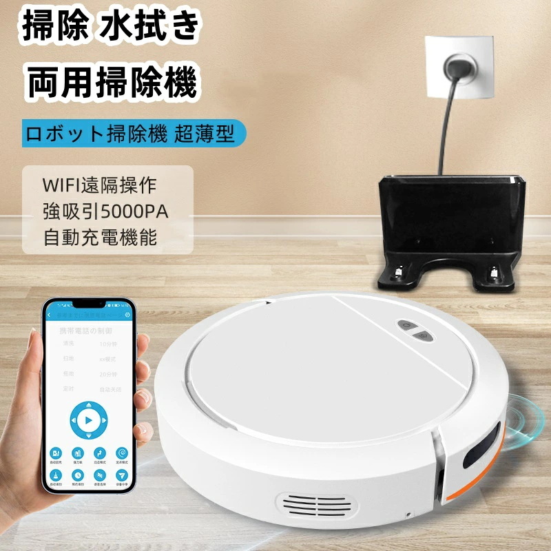 ロボット掃除機 水拭き掃除機 水拭き両用 超薄型 予約清掃 2800Pa 強力吸引 落下防止 障害物検知 WiFi遠隔操作 自動充電 自動帰還機能 2in1