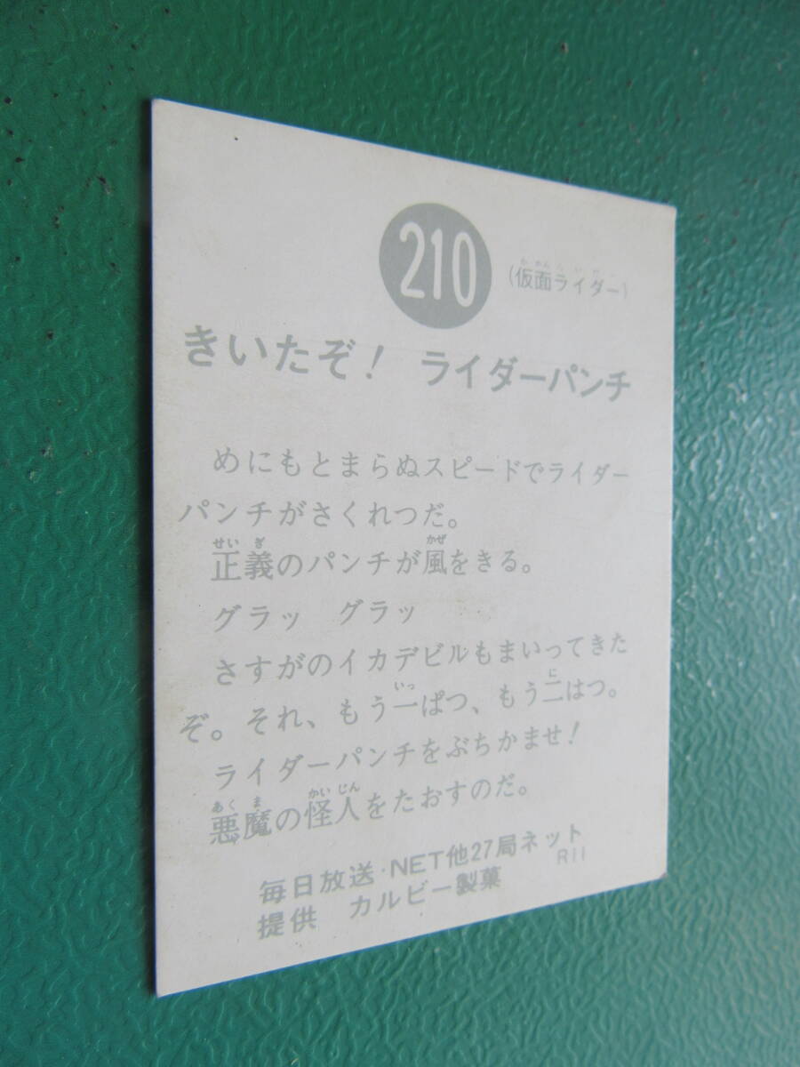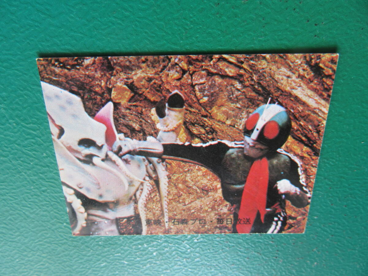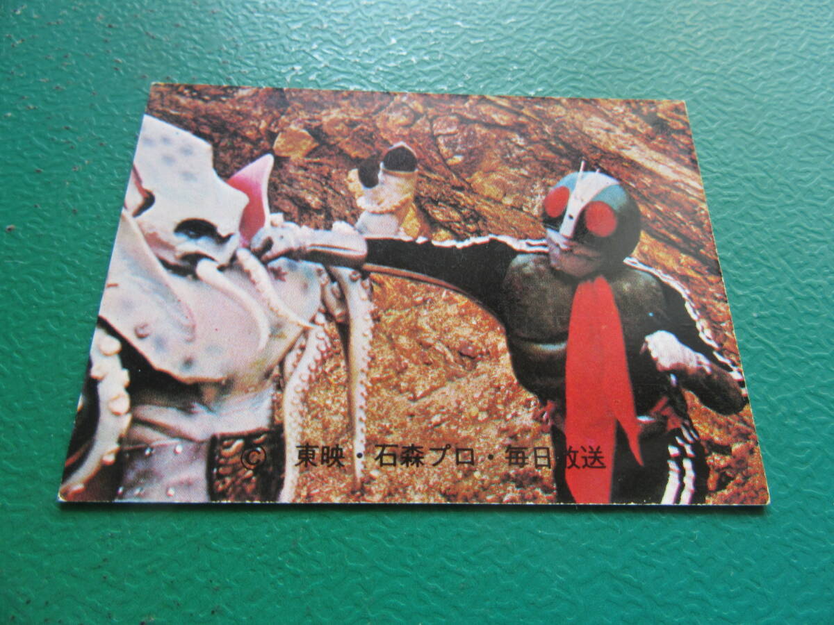 写真のカードです、今から50年以上前のカルビー仮面ライダースナックに付いていた、伝説のライダーカード、当時物、本物です。コレクションにどうでしょうか。