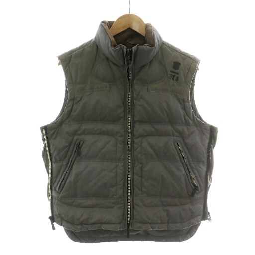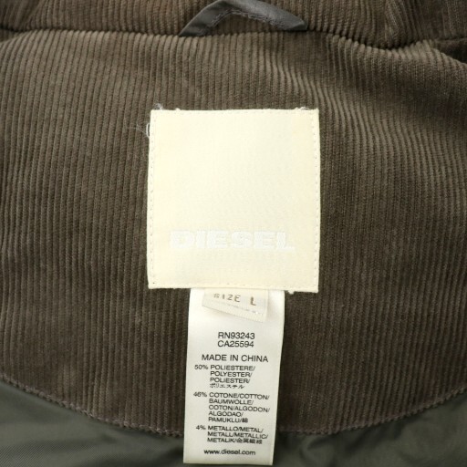 ディーゼル DIESEL ダウンベスト アウター コーデュロイ ロゴ ジップアップ ダブルジップ 総裏地 L 灰 グレー 茶 ブラウン