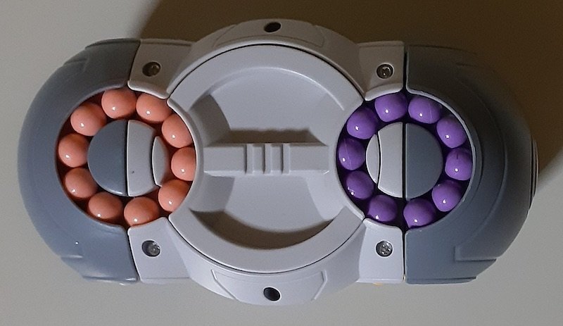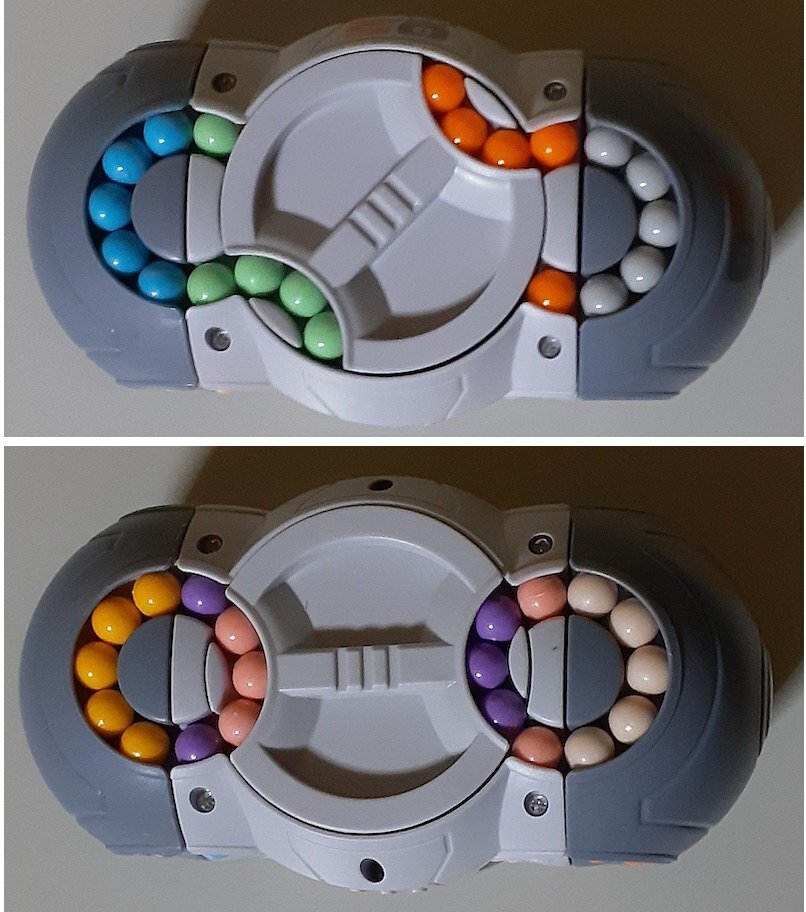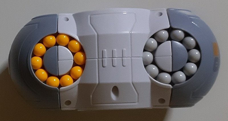 サイドや上下の円形の部分を回転させて、玉を移動させるパズルです。