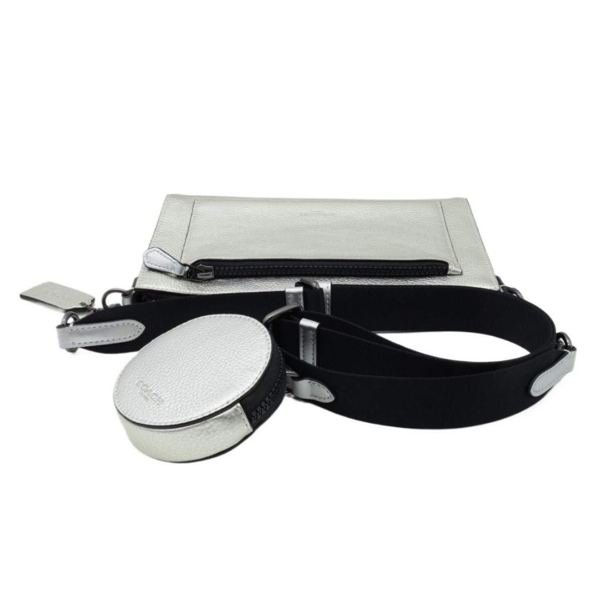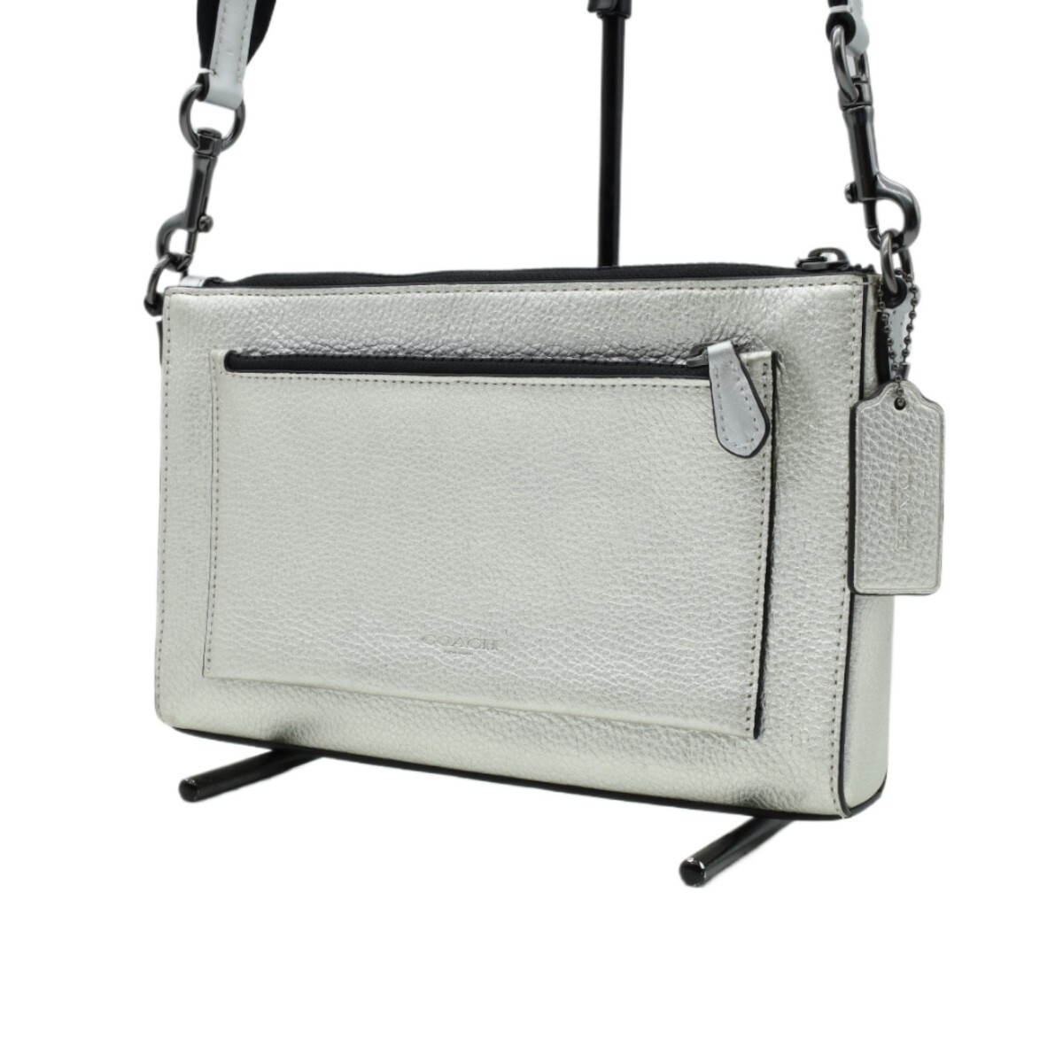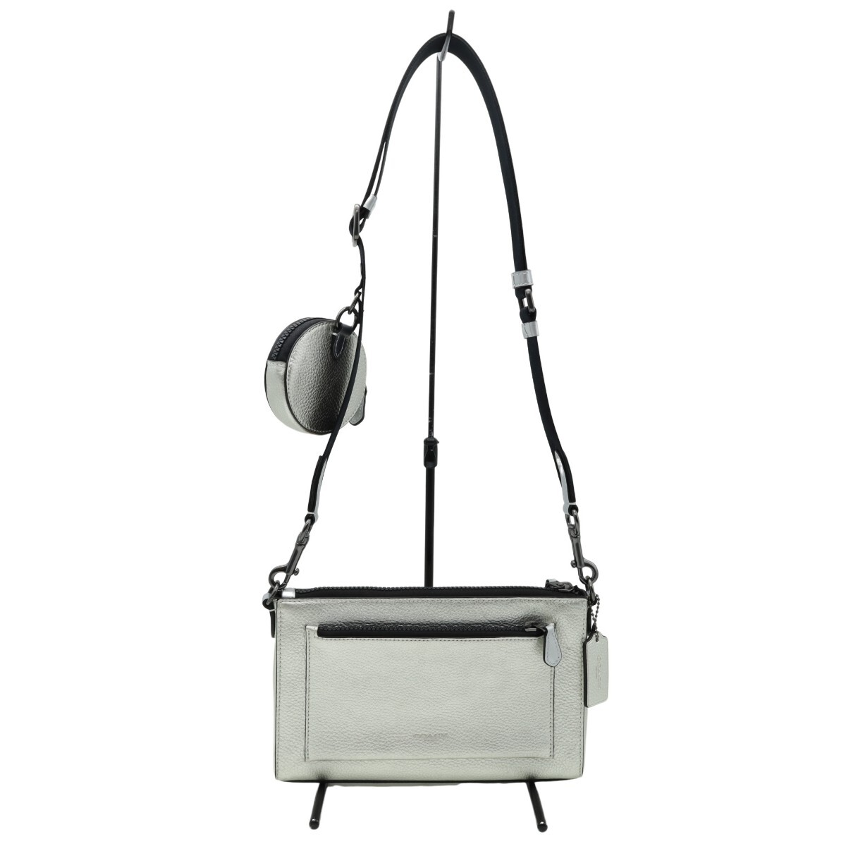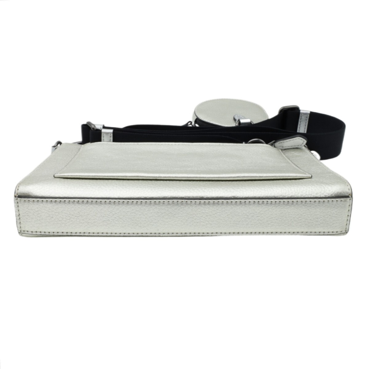 メタリックなシルバーが目を引く、スタイリッシュなショルダーバッグです。