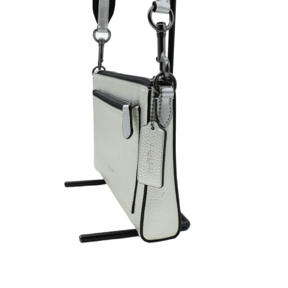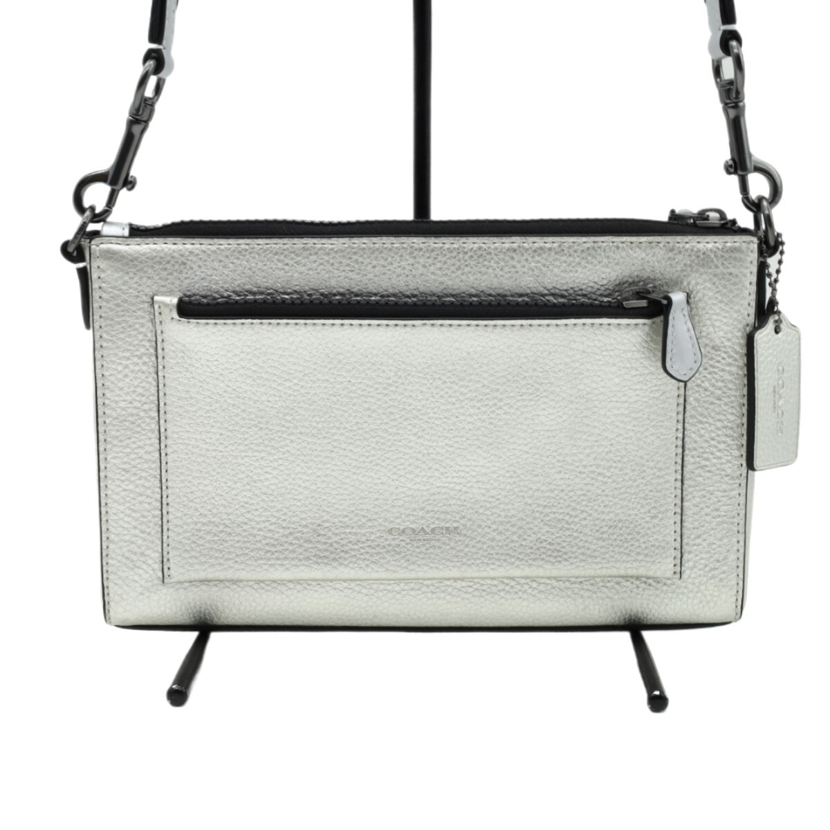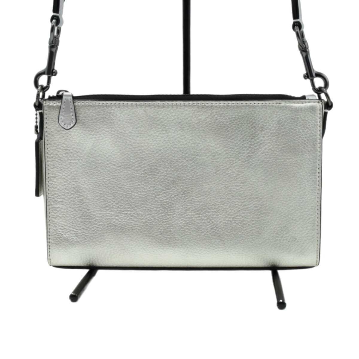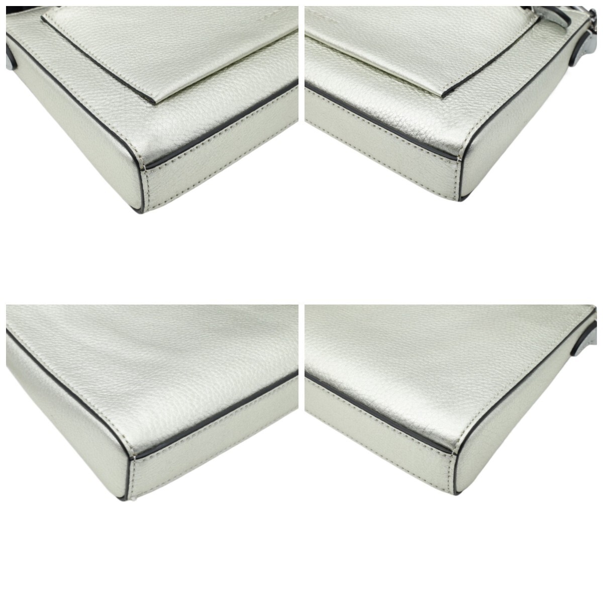 メタリックなシルバーが目を引く、スタイリッシュなショルダーバッグです。