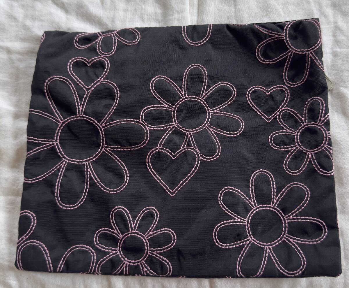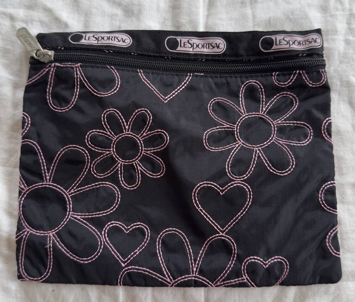 レスポートサック ポーチ 黒 花柄 刺繍 高級タイプ 定番
