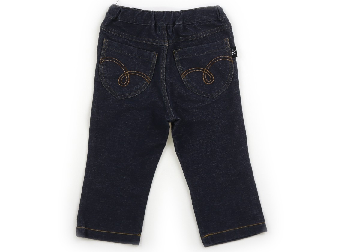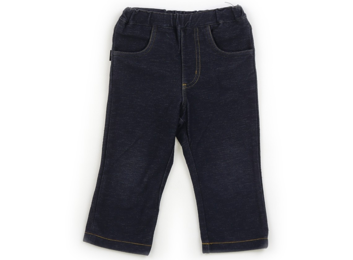 デニム風カットソー。実際のサイズ表記はBM。ウエストのゴムは交換穴があります。全体的に使用感がありますが、特に目立つ汚れはなくまだお使い頂けそうです。