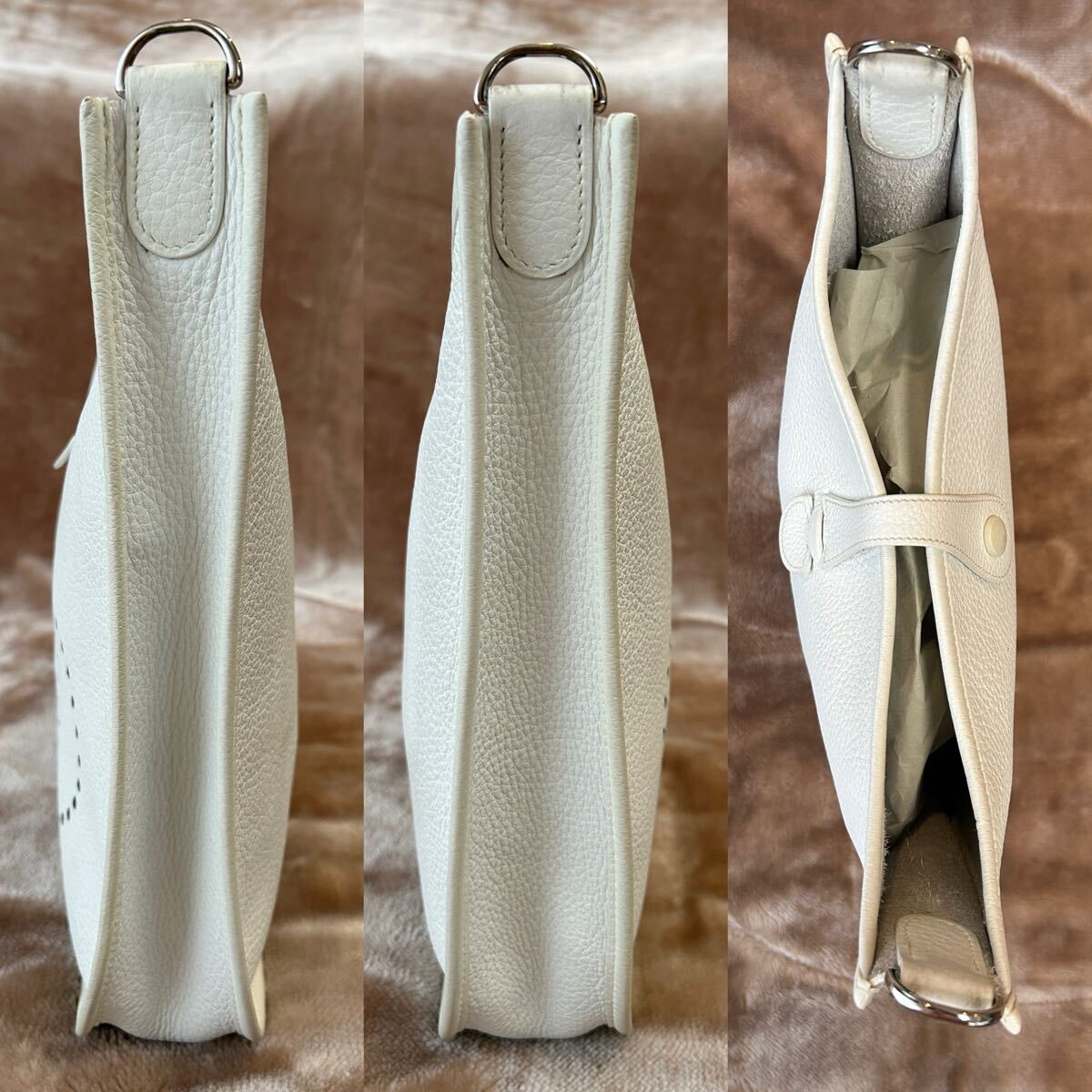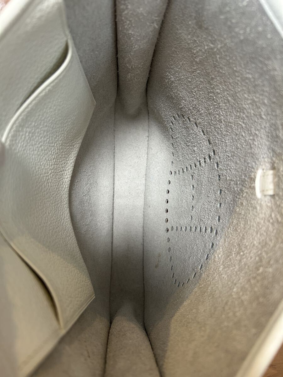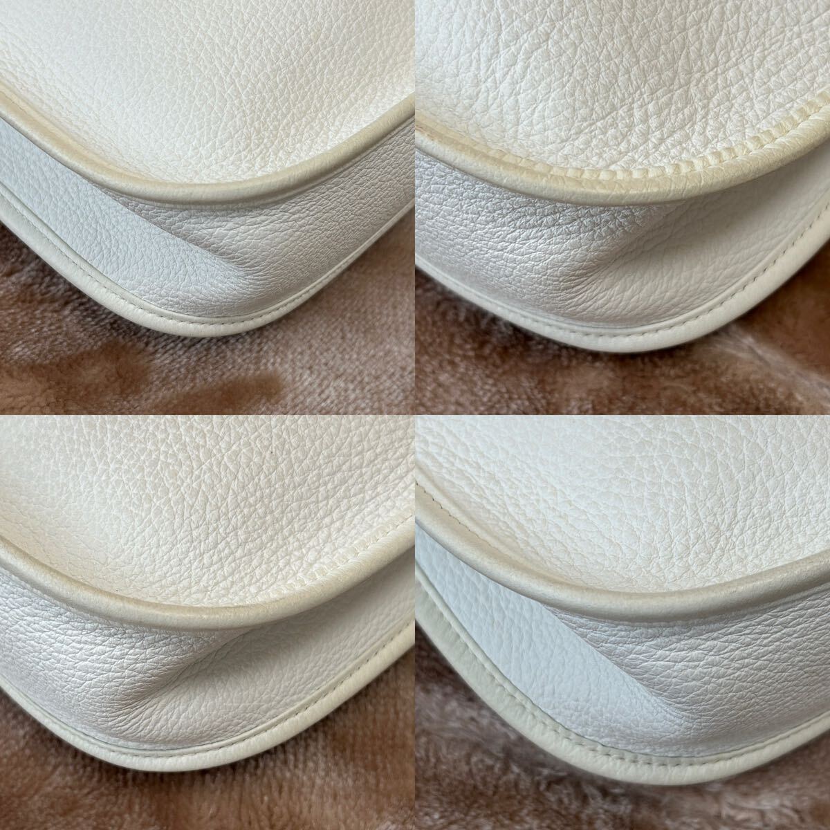 画像の通り、外側にはスレ、金具部分にもスレ、ショルダーストラップを接続する部分の近くには汚れ、カバンの内部にも汚れがありますが、大きく目立つものではないのでギリギリ美品の部類だと思います。