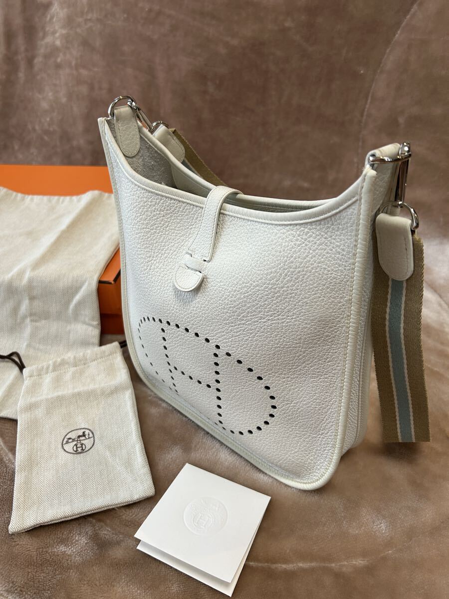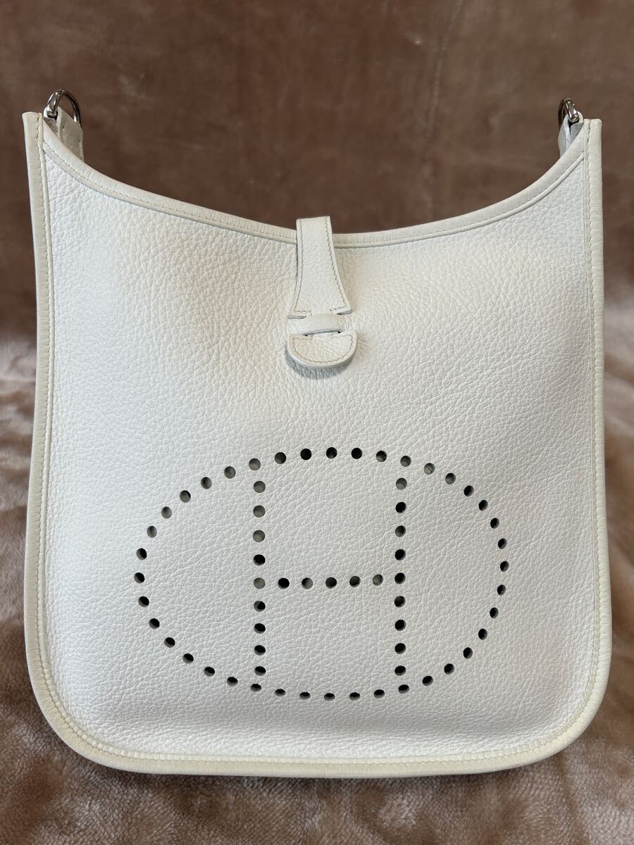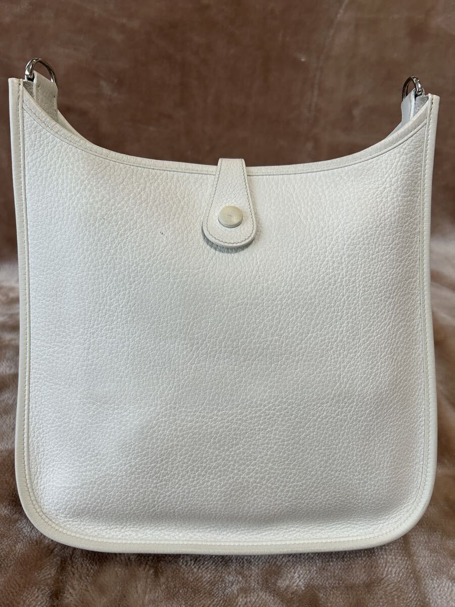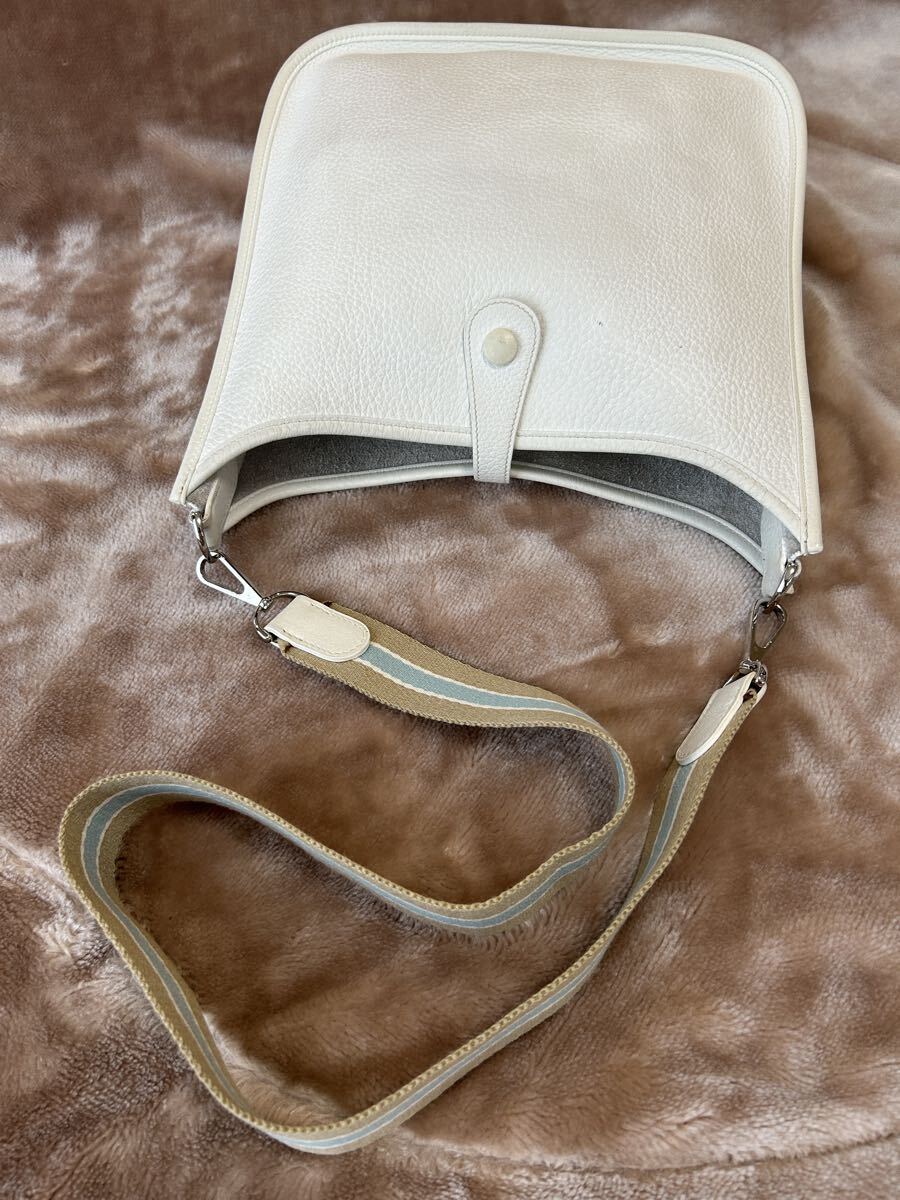 画像の通り、外側にはスレ、金具部分にもスレ、ショルダーストラップを接続する部分の近くには汚れ、カバンの内部にも汚れがありますが、大きく目立つものではないのでギリギリ美品の部類だと思います。