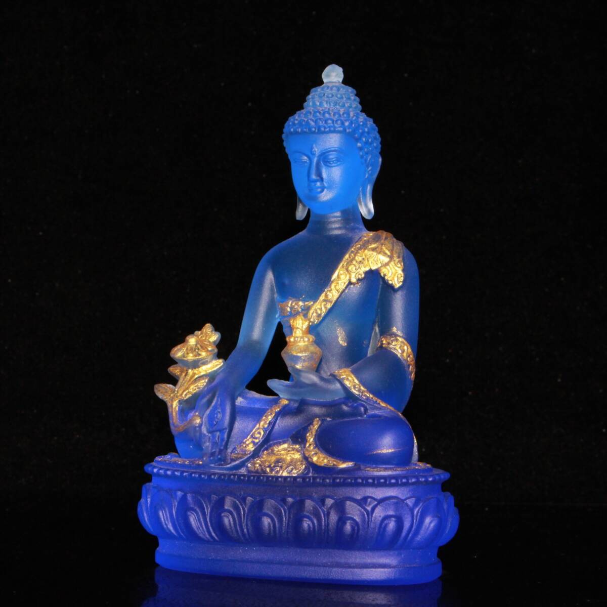 【超珍館蔵】琉璃製 細密彫 金鍍 釋迦牟尼像 仏像 宗教 仏教古美術 供養品 古賞物 古董品 古美術品 時代物 旧家蔵出 稀少珍蔵品