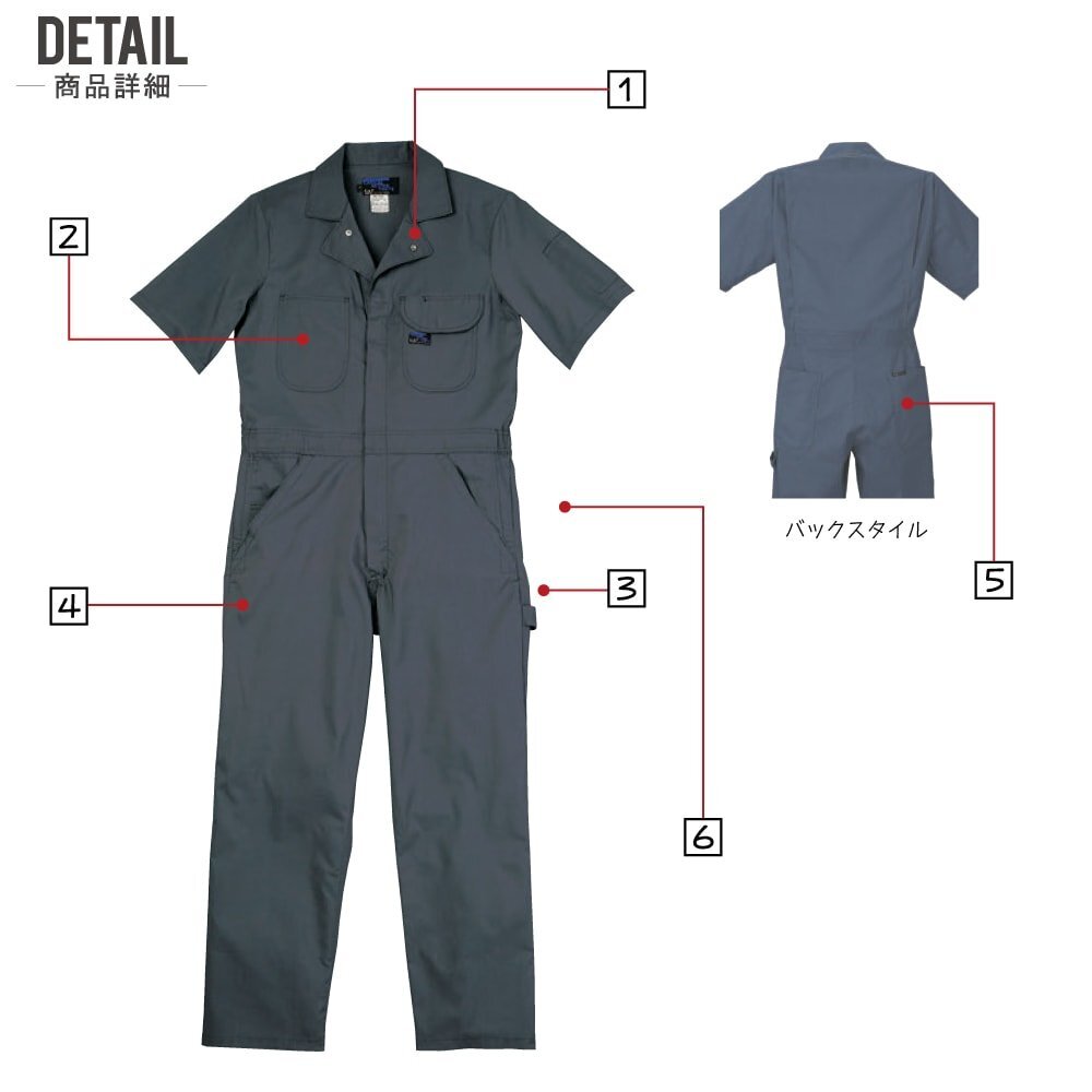 クレヒフク 作業服 春夏 半袖 つなぎ メンズ レディース 608 色:ブルー サイズ:5L ★ 対象2点 送料無料 ★