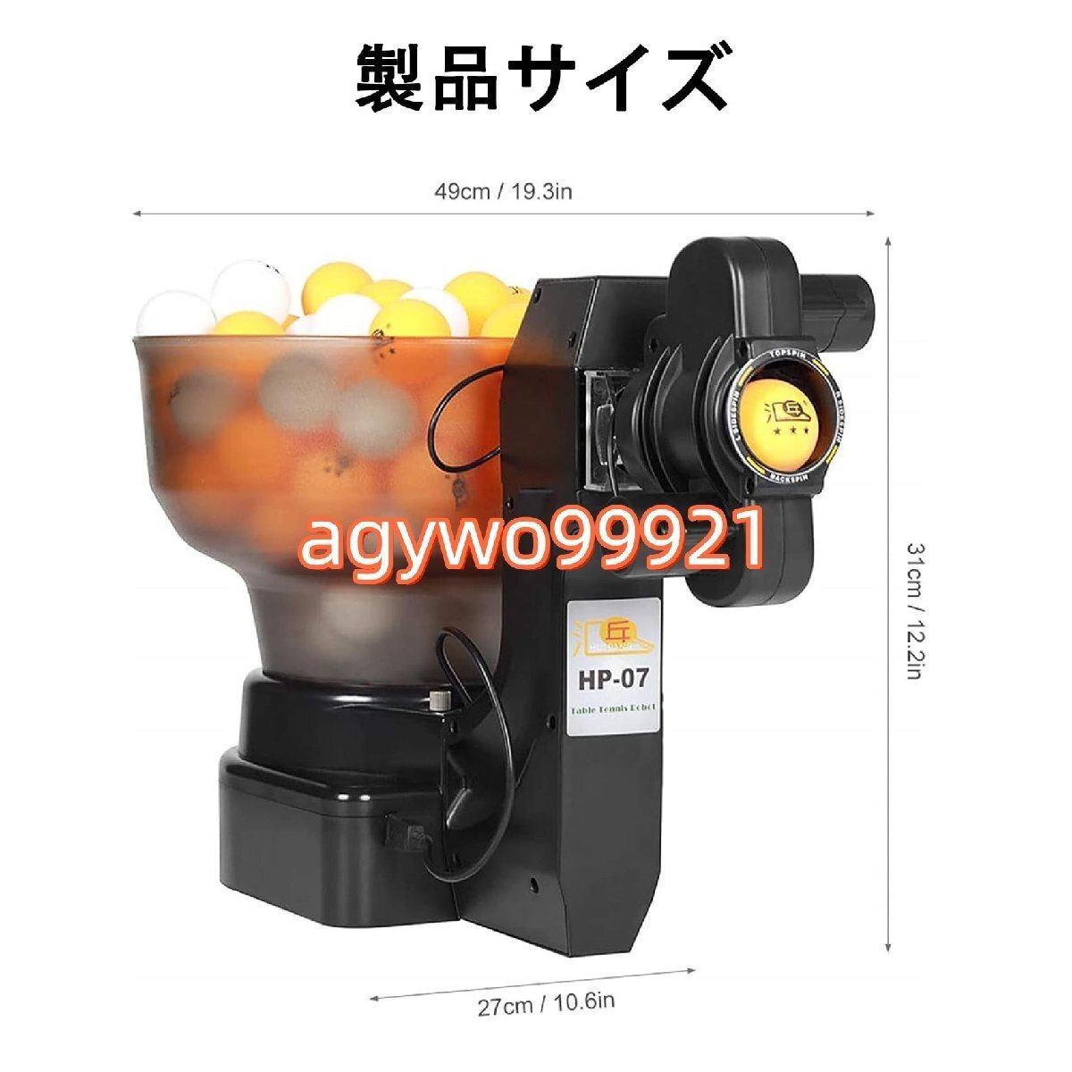 【ピンポンボールマシン 仕様】ピンポンボールマシン サイズは約49*31*27cm、重さは約3.5kgです。7速機首仰角を任意に切り替え可能。出玉周波数は0~5段階、スイング周波数は0~5段階で調整可能です。この製品には40mmのピンポン球を推奨します。